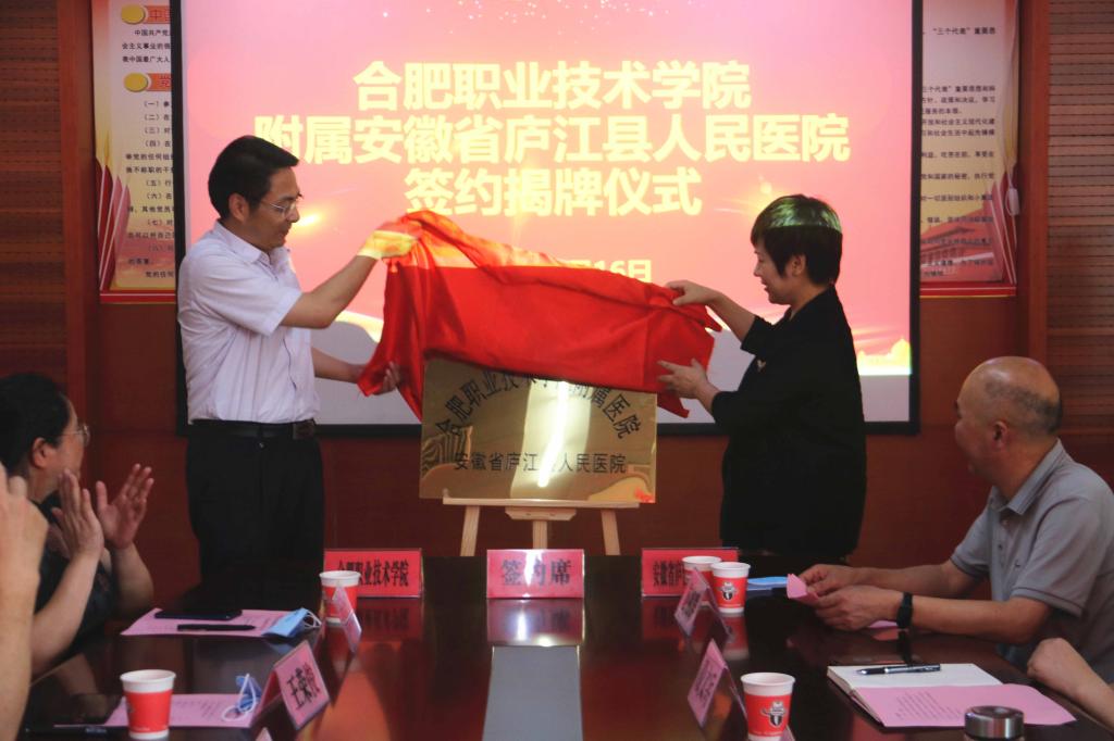 7月16日上午,我校第二所附属医院“合肥888集团学院附属医院安徽省庐江县人民医院”签约揭牌仪式在庐江县人民医院隆重举行。这是校院双方深入贯彻安徽省“十四五”教育事业发展规划,拓展医教协同“朋友圈”,加快学校地方技能型高水平大学建设,促进我市县域卫生与健康事业发展迈出的坚实步伐。为进一步做优我校医学类专业,推进医学生“早临床、多临床、反复临床”,后期将在联合办学、临床实践教学、双方师资培养、教学能力培养、教育科研等方面深化合作,做实做远。