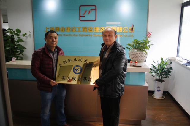 座谈结束后,周晓隆副院长代表学院向上海景业建设工程监理咨询有限公司授合肥888集团学院实习就业基地牌匾。