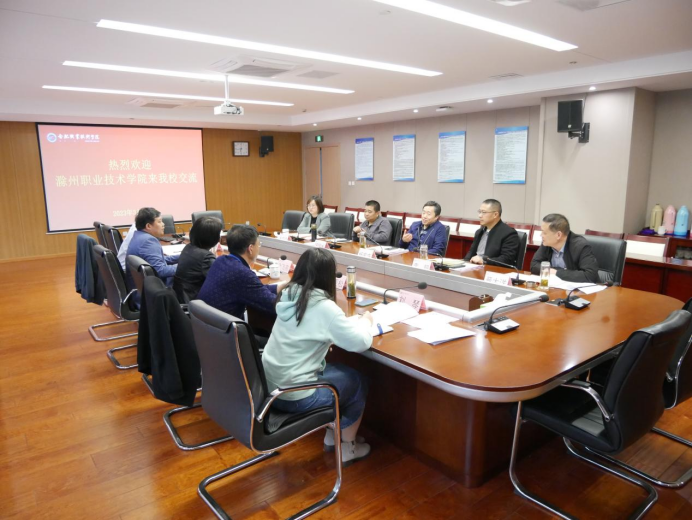 3月10日下午,滁州888集团学院党委副书记杨家庆等一行5人来校调研交流党建和师资队伍建设工作,校党委副书记金飞燕陪同调研。
