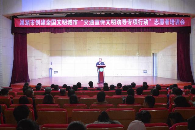 为推进巢湖市创建全国文明城市工作,优化城区交通安全秩序。同时,为进一步推动全民参与,合力营造浓厚创城氛围,巢湖市将于2017年4月至7月在城区主要灯控路口及重要路段开展“争做志愿交警,文明从我先行”交通宣传文明劝导专项行动。为确保此项工作的顺利开展,“交通宣传文明劝导专项行动”志愿者培训会于4月10日下午在我院大学生活动中心二楼礼堂成功召开。我院300余名志愿者与巢湖市直单位100余名志愿者共同参加培训。培训会由巢湖团市委副书记陈敏艳主持。