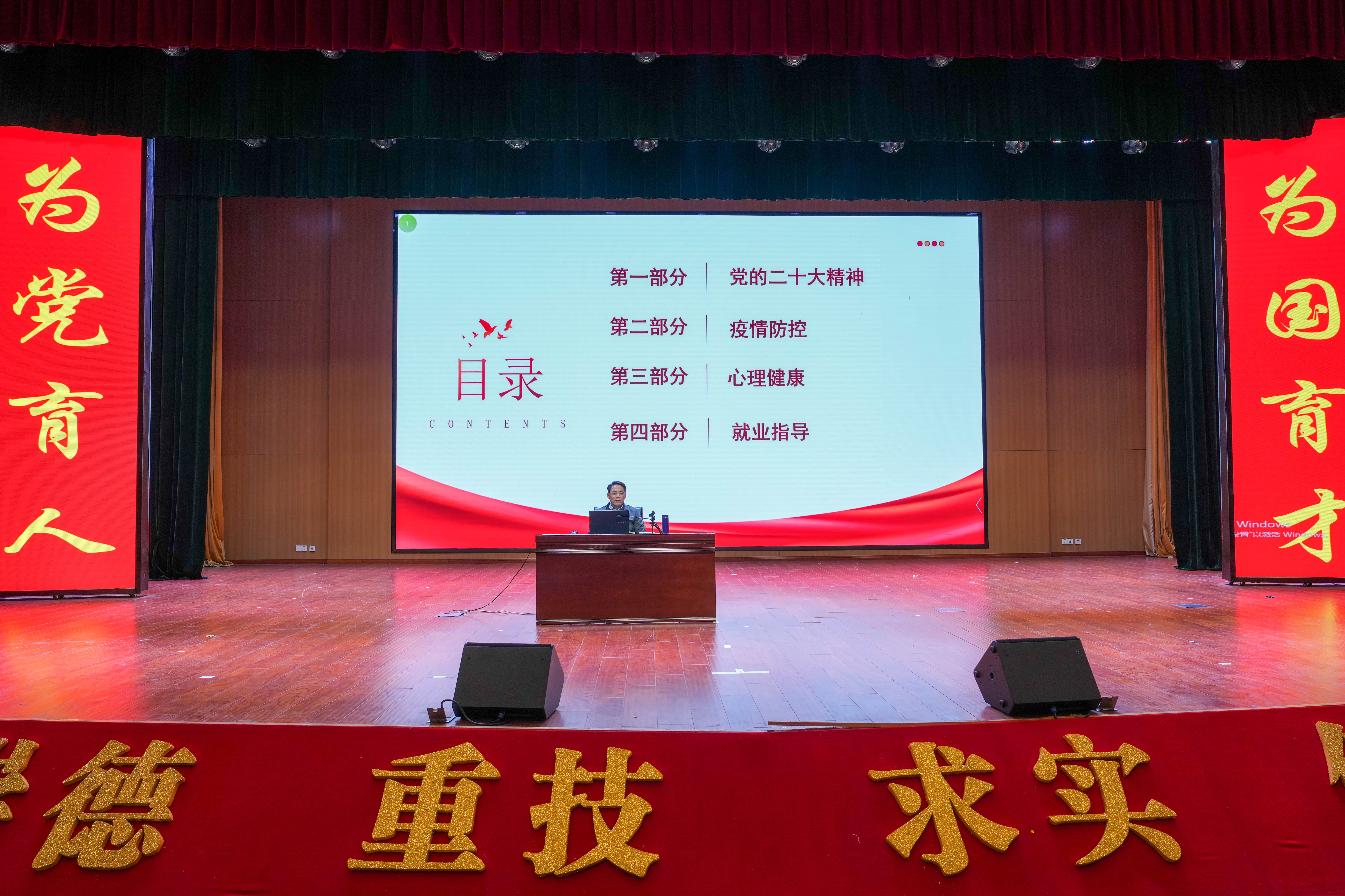 春季开学以来,校领导班子成员、各部门各二级学院党政负责人、思政课教师代表、辅导员代表纷纷走上讲台,深入阐释党的二十大精神、积极宣传三年抗疫成就、提高学生对“乙类乙管”疫情防控的意识并科普大学生心理健康相关内容,对于即将实习的年级,还有针对性地讲解了就业指导相关内容。学生处、各二级学院则通过班级教育课以及日常教育引导,帮助学生正确看待国际、国内形势,进一步了解学校人才培养方案、各类创新技能大赛开展、实践实训、校园管理服务、校园文化活动开展等情况,问学生学习生活所需、答学生成长发展之惑。