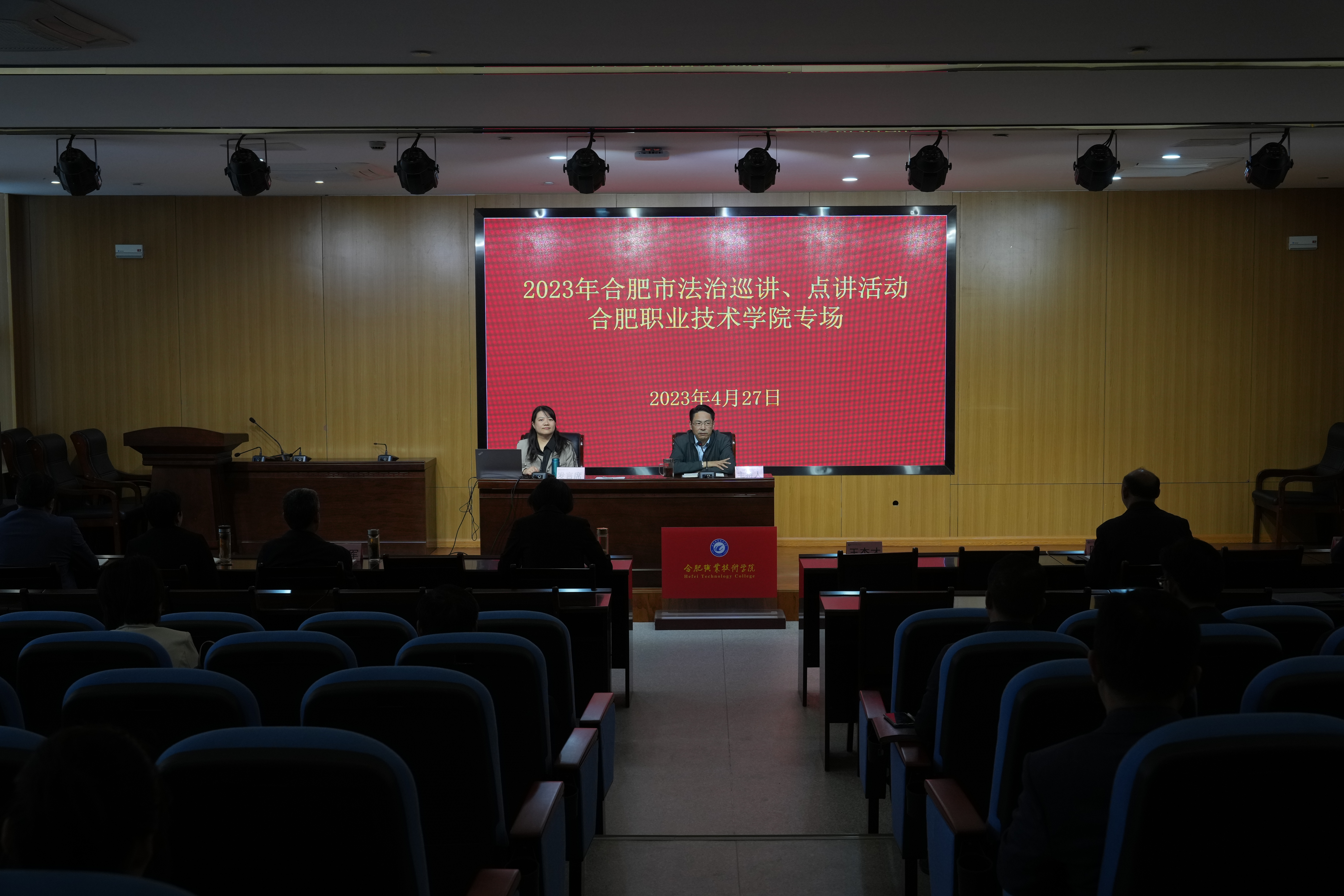为全面贯彻和落实习近平法治思想,适应新时代中国特色社会主义法治对一流人才的新要求,全面提升学校人才培养质量,切实做到习近平法治思想“进教材、进课堂、进头脑”,4月27日下午,在合肥市依法治市普法教育领导小组办公室的安排下,学校邀请了合肥市委党校(合肥行政学院)政治和法律教研部副主任、副教授、合肥市“八五”普法讲师团成员刘玉勉就习近平法治思想内容,在汇心湖校区面向校领导、全体中层干部及校内师生代表举办了“2023 年合肥市法治巡讲合肥888集团学院专场”讲座活动。