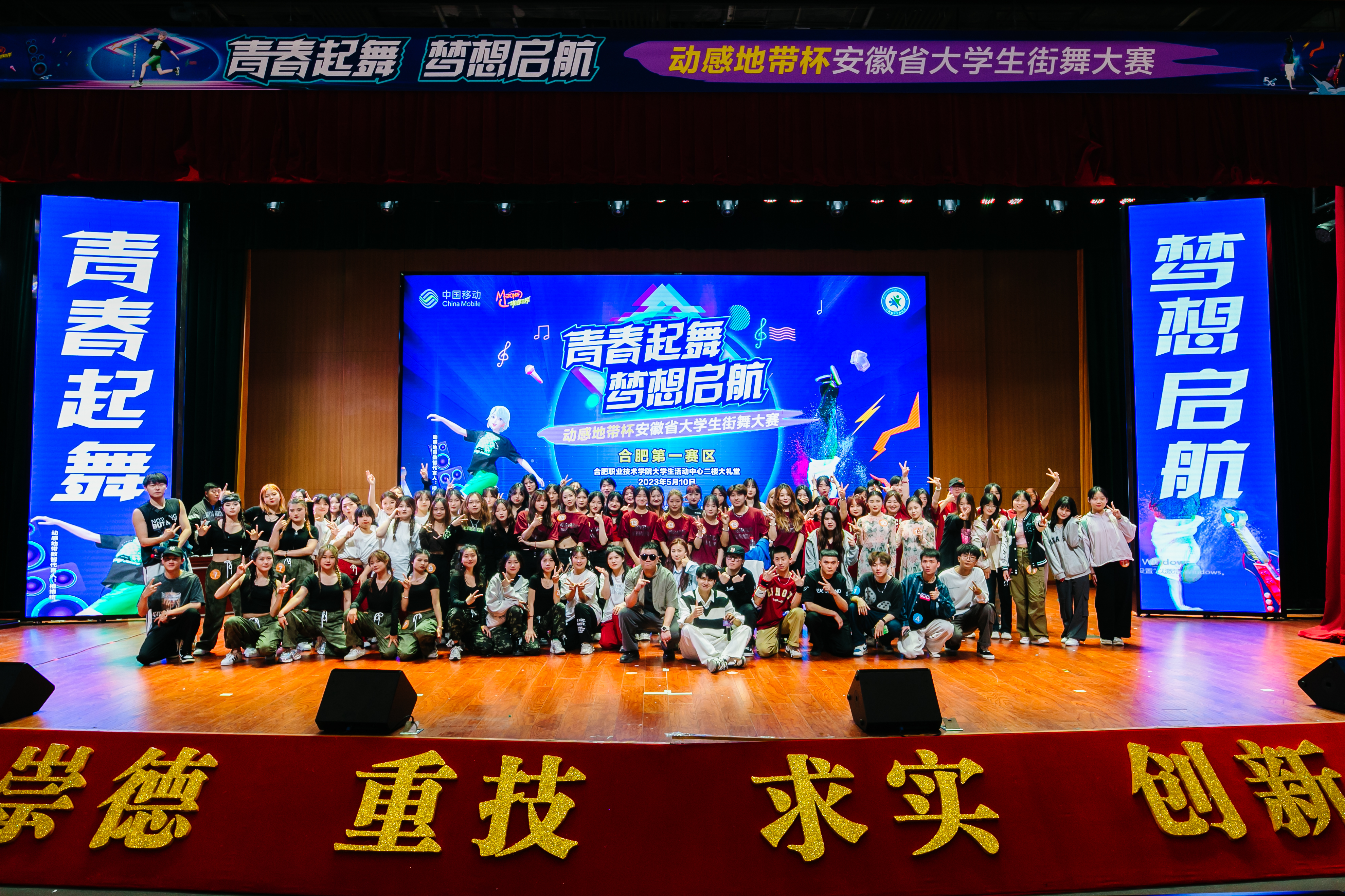 5月10日,由共青团安徽省委、安徽省委宣传部、安徽省教育厅、安徽省文化和旅游厅、安徽省体育局、安徽省学生联合会等多家单位联合主办、我校承办的“青春起舞 梦想启航”——“动感地带杯”安徽省大学生街舞大赛合肥赛区第一场初赛在汇心湖校区大学生活动中心二楼大礼堂成功举办。来自12所高校、17支代表队、100多名参赛选手在舞台上展现青春活力,200余名街舞爱好师生在现场共同感受街舞盛宴。