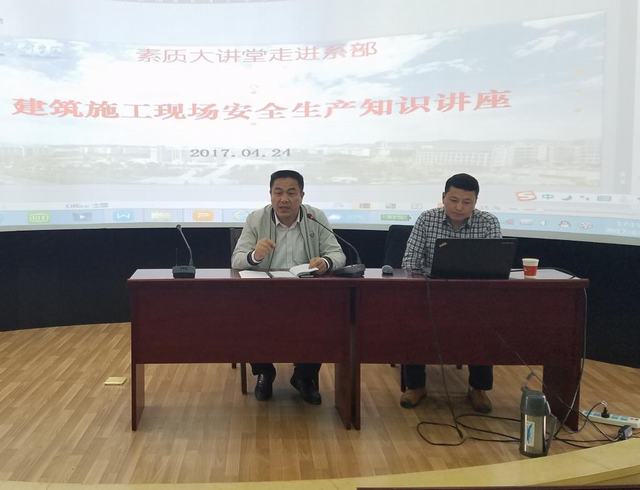 为了增强我院即将走上实习岗位2015级建筑类专业学生的建筑施工现场安全生产意识,2017年4月24日下午,由院宣传部、科技处与建筑工程系共同举办的“素质教育大讲堂走进系部”系列活动之一,邀请巢湖市建设工程质量监督站副站长、建筑施工安全生产专家、高级工程师候运魁在学院图书馆二楼报告厅举办建筑施工现场安全生产知识专题讲座。讲座由建筑工程系负责人范家茂主持,建筑工程系即将走上实习岗位的2015级建筑类专业学生以及部分专业课教师参加讲座。