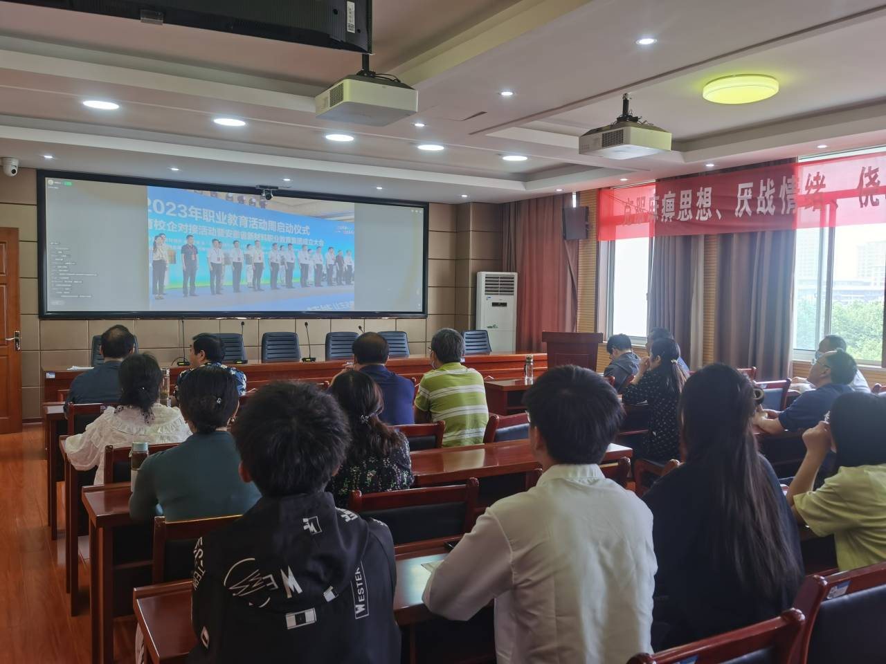 5月17日下午,安徽省2023年职业教育活动周启动仪式、第十一届职业教育校企对接活动暨安徽省新材料职业教育集团成立大会在铜陵举行。全省教育主管部门代表、职业院校代表、企业代表等350余人参加了主会场活动。我校在汇心湖、鼓山两校区分别设立了网络直播分会场,在校的校领导及各部门、二级学院负责人、部分教师和学生代表观看了直播。