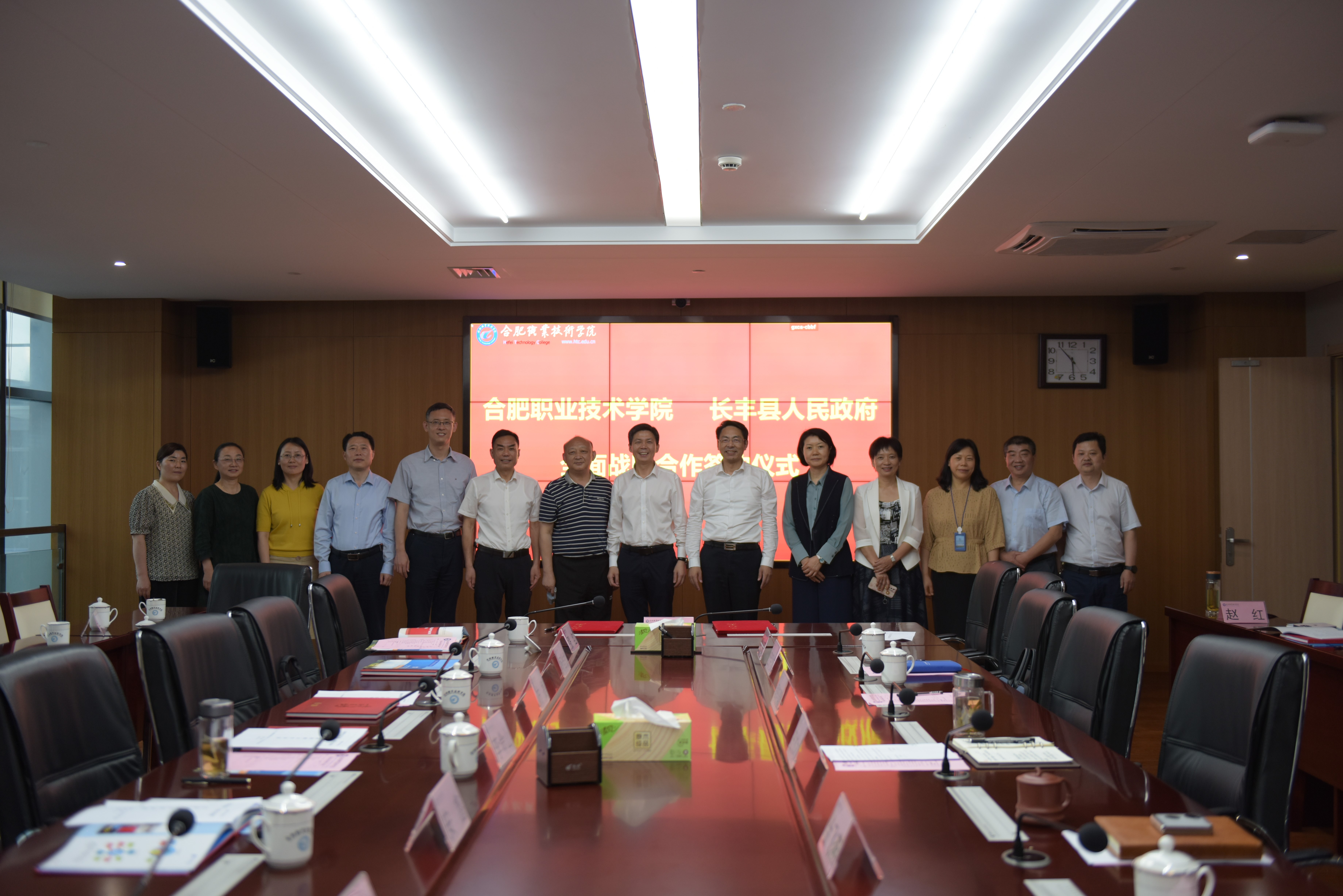 5月19日下午,我校与长丰县人民政府全面战略合作协议签约仪式在汇心湖校区627室举行。校党委书记王杰才,党委副书记金飞燕,党委委员、副校长周晓隆,长丰县委书记李命山,县委常委、副县长方捷,副县长安鑫等出席签约仪式,长丰县有关部门、我校相关职能部门及二级学院负责人参加。签约仪式由王杰才主持。金飞燕与方捷分别代表校地签约。本次签约活动是我校2023年职业教育活动周重要内容之一。