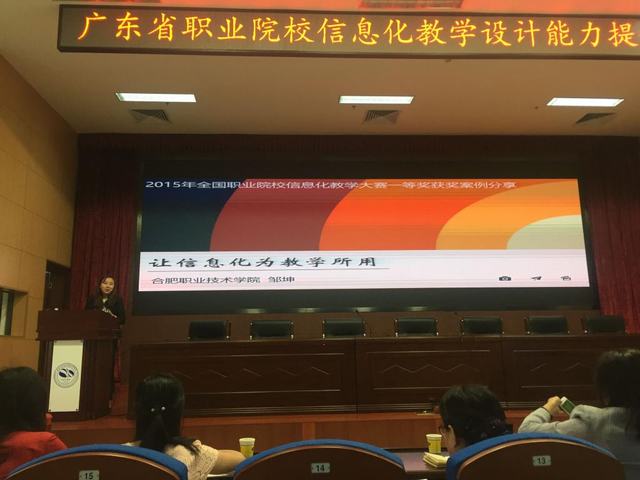 2017年5月18日,我校教师邹坤应广东省职业教育信息化与信息安全专业委员会之邀,为广东省职业院校信息化教学设计能力提升班做了主题为《让信息化为教学所用》的专题讲座。广东省职业院校教师信息化教学大赛决赛入围选手约200人次听取了讲座。
