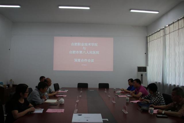 6月7日下午,合肥市第八人民医院副院长唐智国一行来我院洽谈创建附属医院事宜,学院副院长周晓隆热情接待。会议在医学分院北楼215会议室举行。医学分院负责人张明、王荣俊、孙美兰等参加了会议,会议由王荣俊主持。