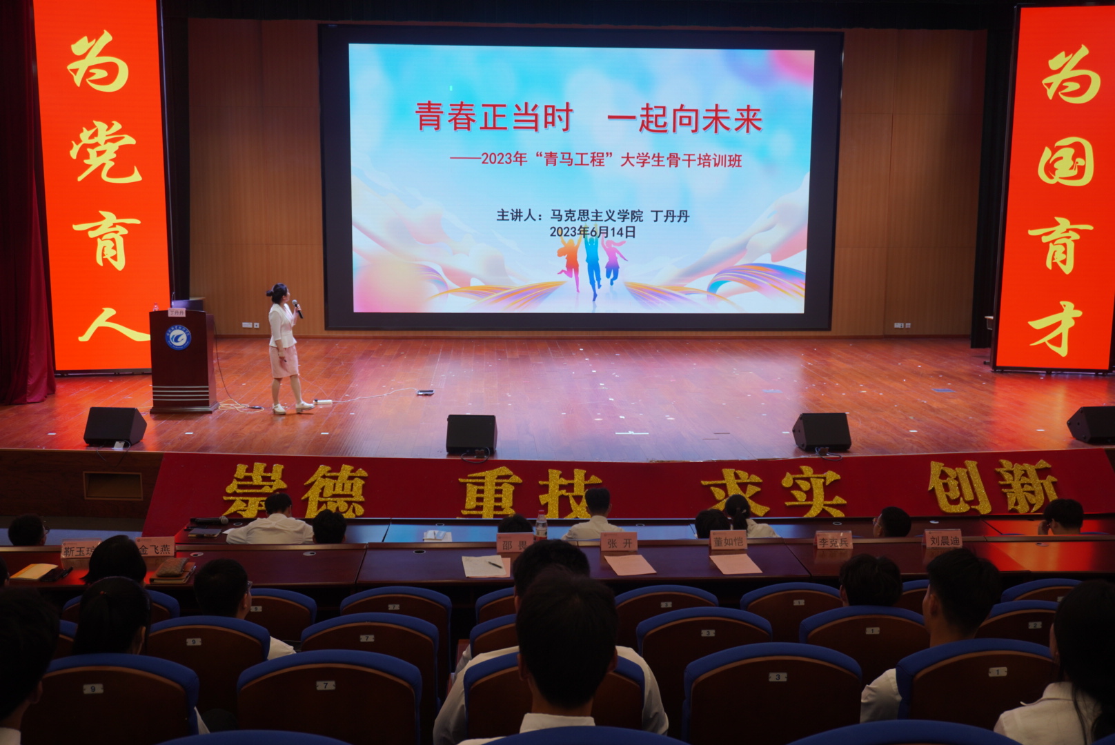 为进一步贯彻落实《关于深入实施青年马克思主义者培养工程的实施意见》,以马克思主义中国化的最新成果武装青年,引导青年学生进一步坚定跟党走中国特色社会主义道路的理想信念,成长为中国特色社会主义事业的合格建设者和可靠接班人,6月14日下午,我校2023年“青马工程”大学生骨干培训班开班仪式在大学生活动中心举行。校党委副书记金飞燕、学生处处长尹宗平、马克思主义学院院长靳玉琼、马克思主义学院教师丁丹丹、“青马工程”大学生骨干培训班指导教师、各学院团总支负责人以及由校院两级团学组织遴选出的90名学员出席开班仪式。