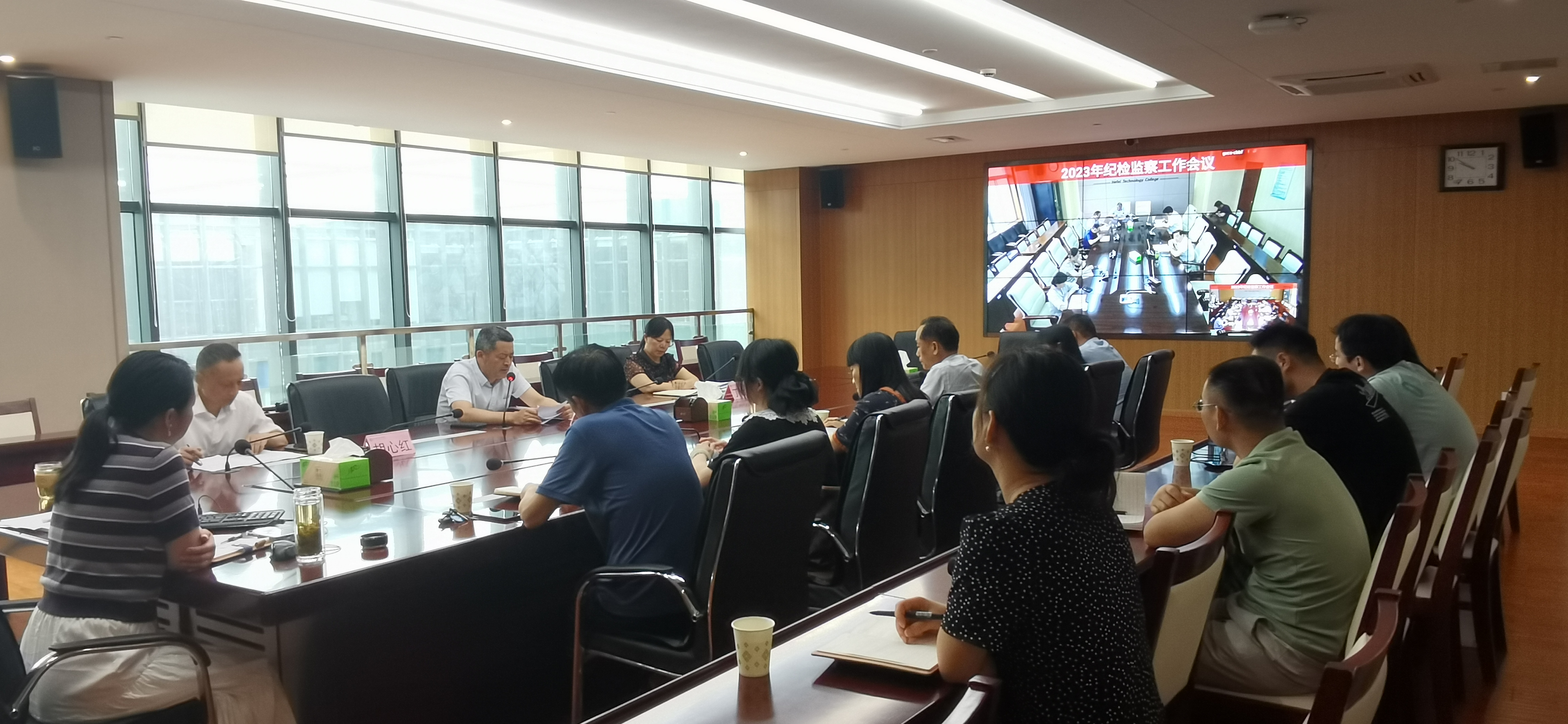 6月19日上午,我校纪委在汇心湖校区和鼓山校区同步视频召开2023年上半年纪检监察工作会议,回顾总结2023年上半年党风廉政建设和反腐败工作,部署安排下半年工作任务。校纪委委员,直属分党委、直属分党委各党支部纪检委员,各二级学院党总支、各党支部纪检委员及纪委办全体成员共20余人参加了会议。会议由校纪委书记何军主持。