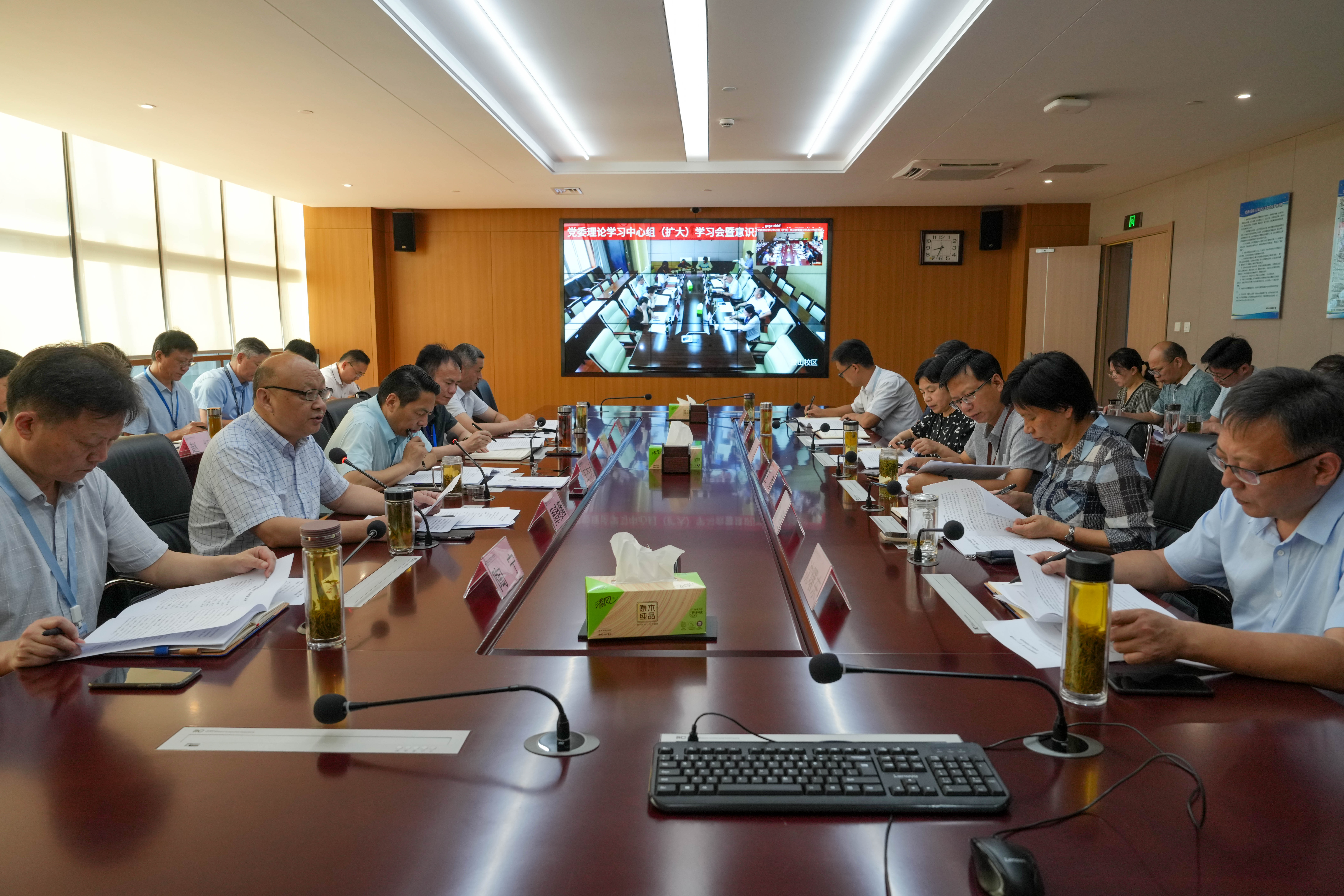6月28日上午,我校在汇心湖校区行政楼627会议室和鼓山校区崇德楼三楼会议室召开党委理论学习中心组学习会。党委理论学习中心组全体成员,鼓山校区党工委、直属分党委、各党总支、电大(继续教育学院)党支部、马克思主义学院(筹)党支部、各部门、各二级学院主要负责人参加会议,会议由党委书记王杰才主持。