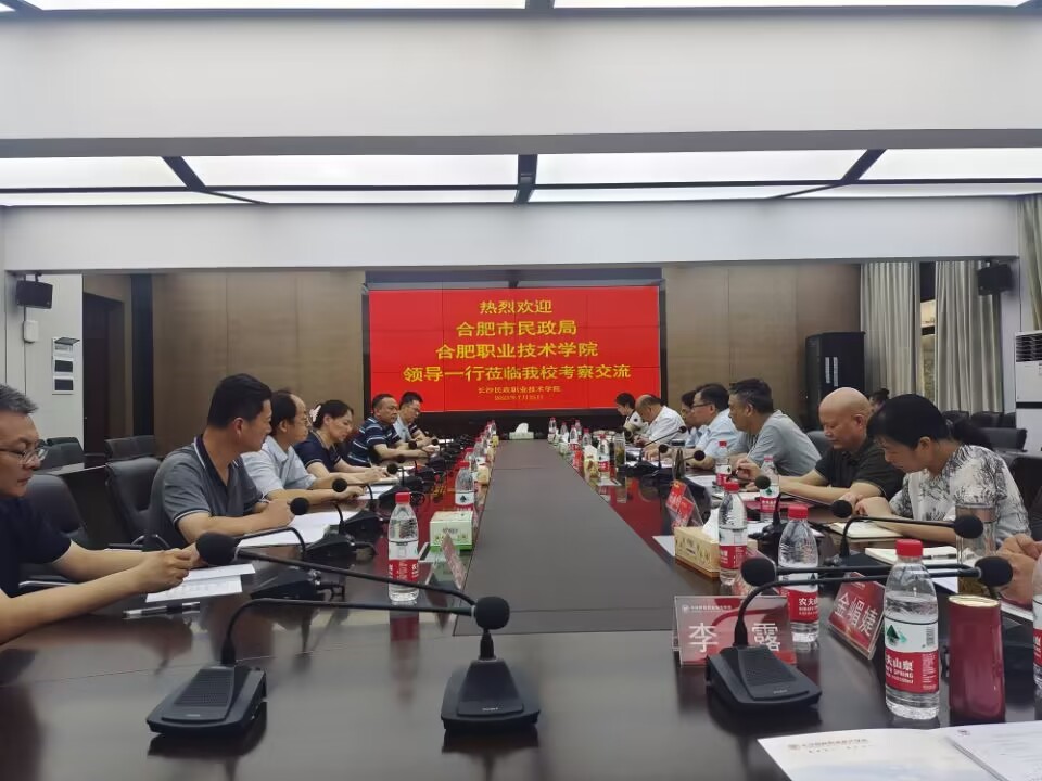 为学习借鉴先进办学经验,加强我校民政类专业建设和人才培养工作,推动我校与合肥市民政局共建“合肥民政学院”建设,7月25日,校党委书记王杰才,党委委员、副校长周晓隆,市民政局局长徐生彬、副局长程光祥带队前往长沙民政888集团学院考察学习,我校医学院、科技处及市民政局等部门负责人陪同考察。长沙民政888集团学院党委书记李斌、副书记周立华,党委委员、副校长刘亚琴等热情接待了考察团。