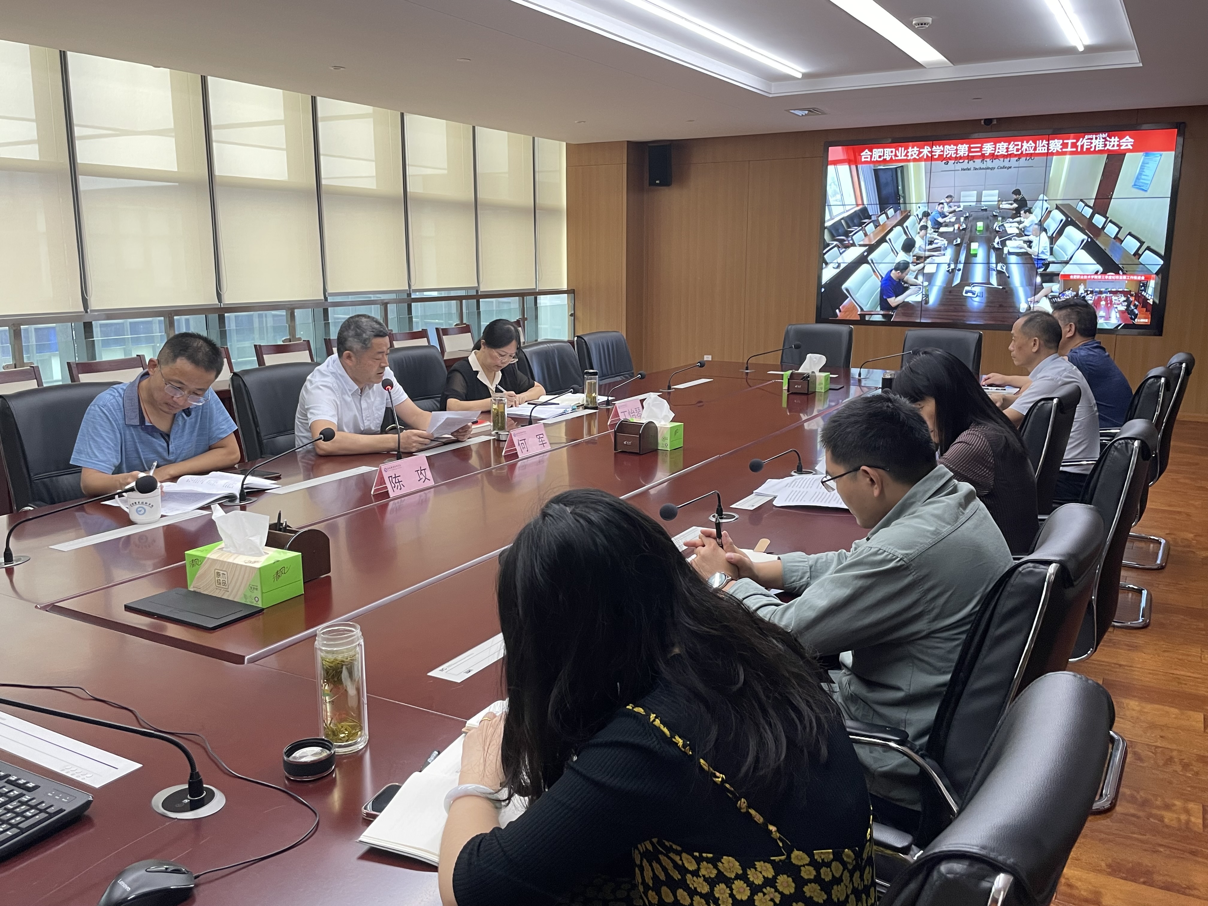 9月19日上午,我校纪委在汇心湖校区和鼓山校区同步视频召开2023年第三季度纪检监察工作推进会。校纪委委员、直属分党委及下属各党支部纪检委员、各二级学院党总支纪检委员、直属党支部纪检委员、纪委办全体成员共20余人参加了会议。会议由校纪委书记何军主持。