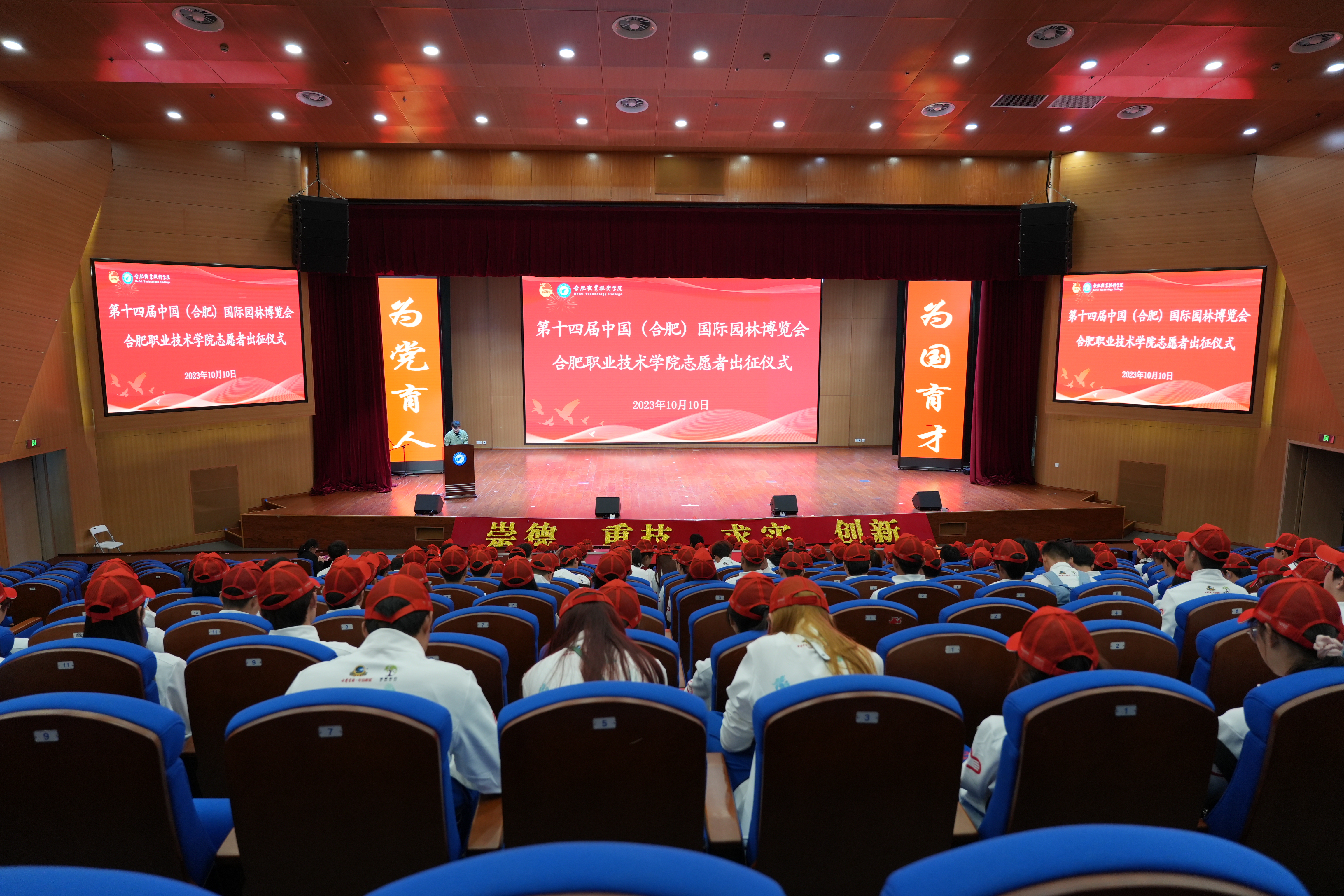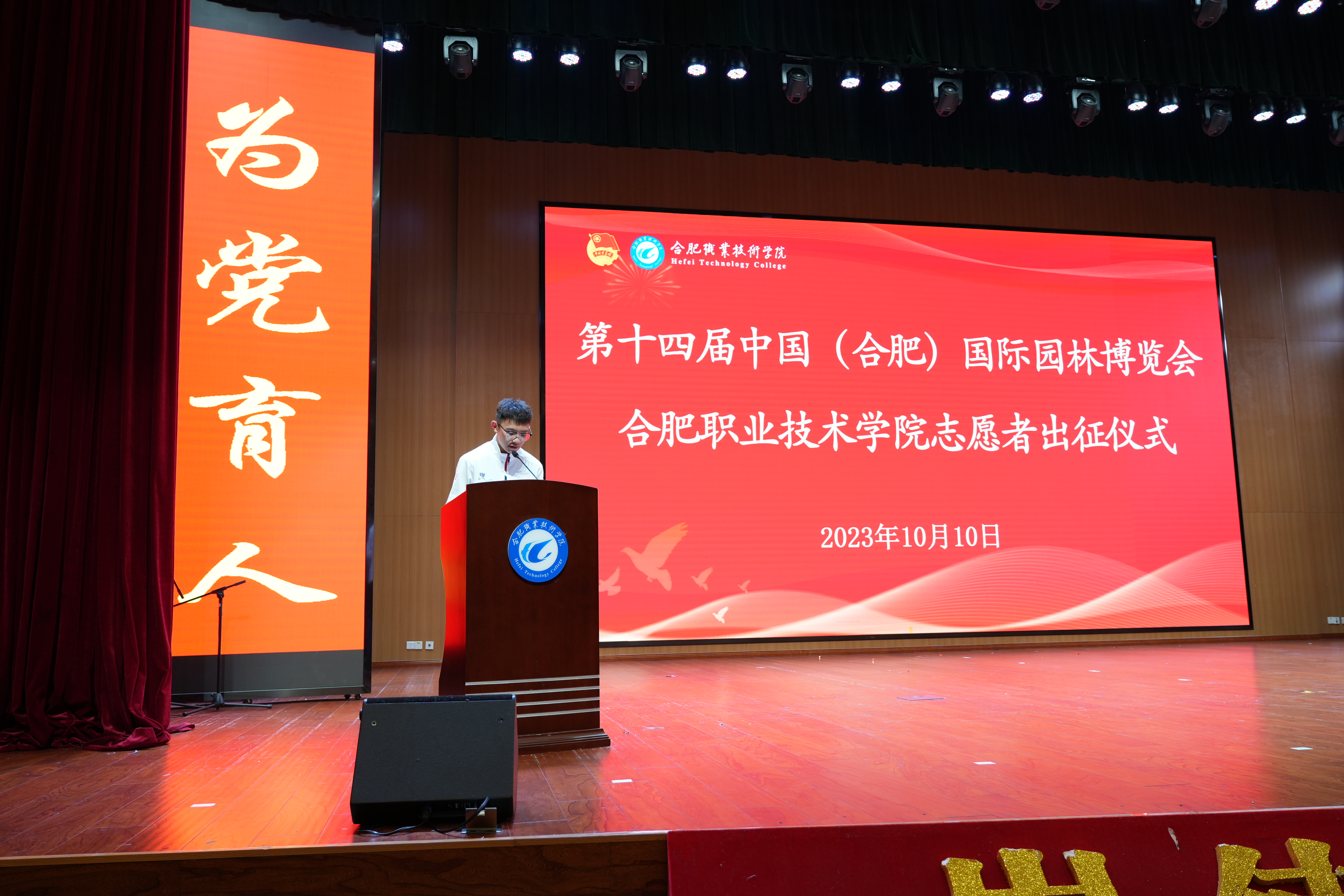 10月10日,我校在汇心湖校区大学生活动中心举行第十四届中国(合肥)国际园林博览会志愿者出征仪式。校团委老师和全体志愿者参加本次出征仪式。