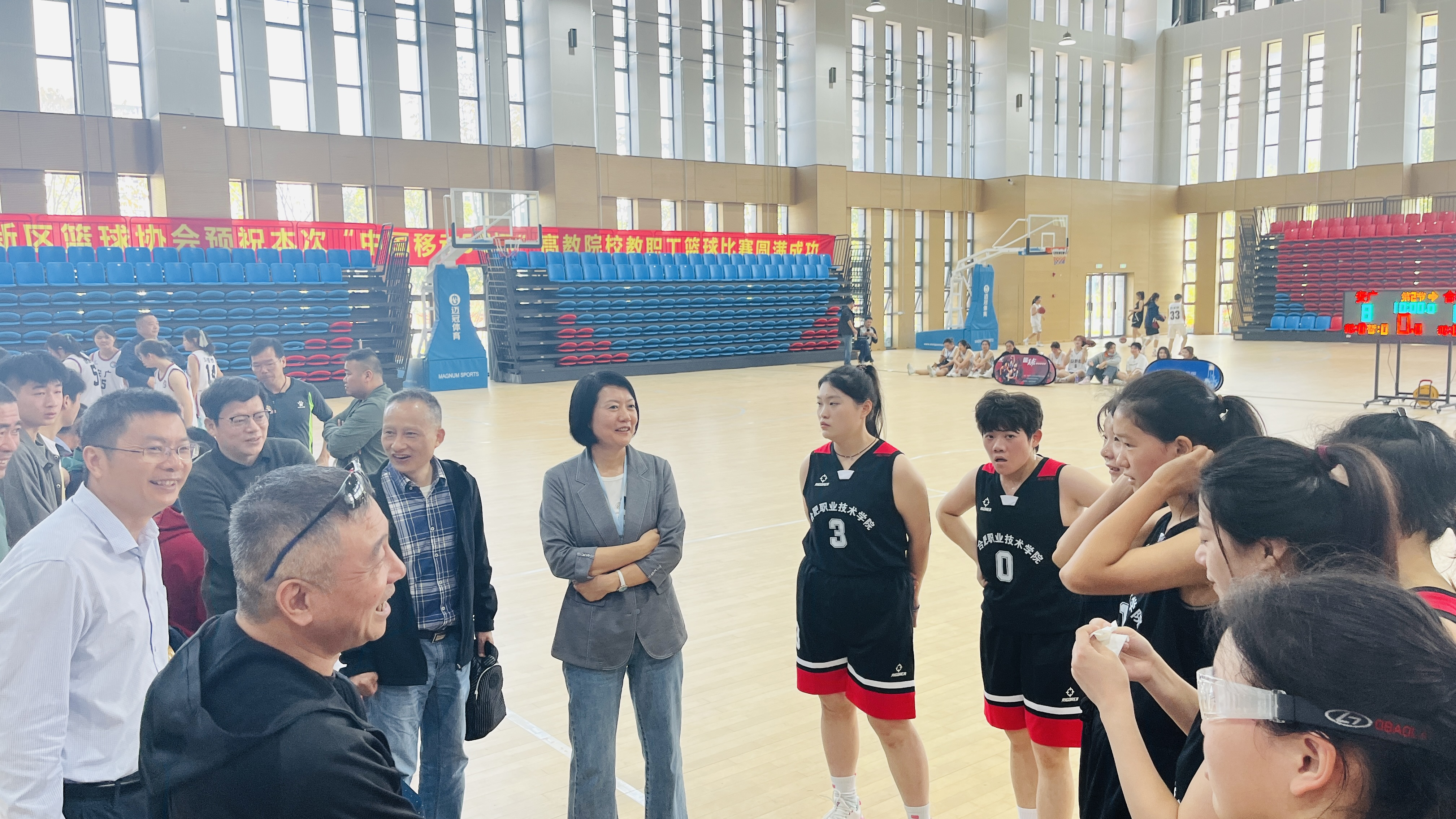 在学校领导的大力支持下,基础教育学院积极组建大学生男子篮球队和女子篮球队,并在领队施敏发和教练魏祥、周刚的带领下参加篮球联赛。比赛期间,校党委班子成员金飞燕、何军、范家茂、魏华及基础教育学院主要负责人等多次前往比赛现场观看比赛,鼓励运动员赛出水平、赛出风格。经过激烈角逐,最终我校女篮夺得冠军,男篮荣获季军。