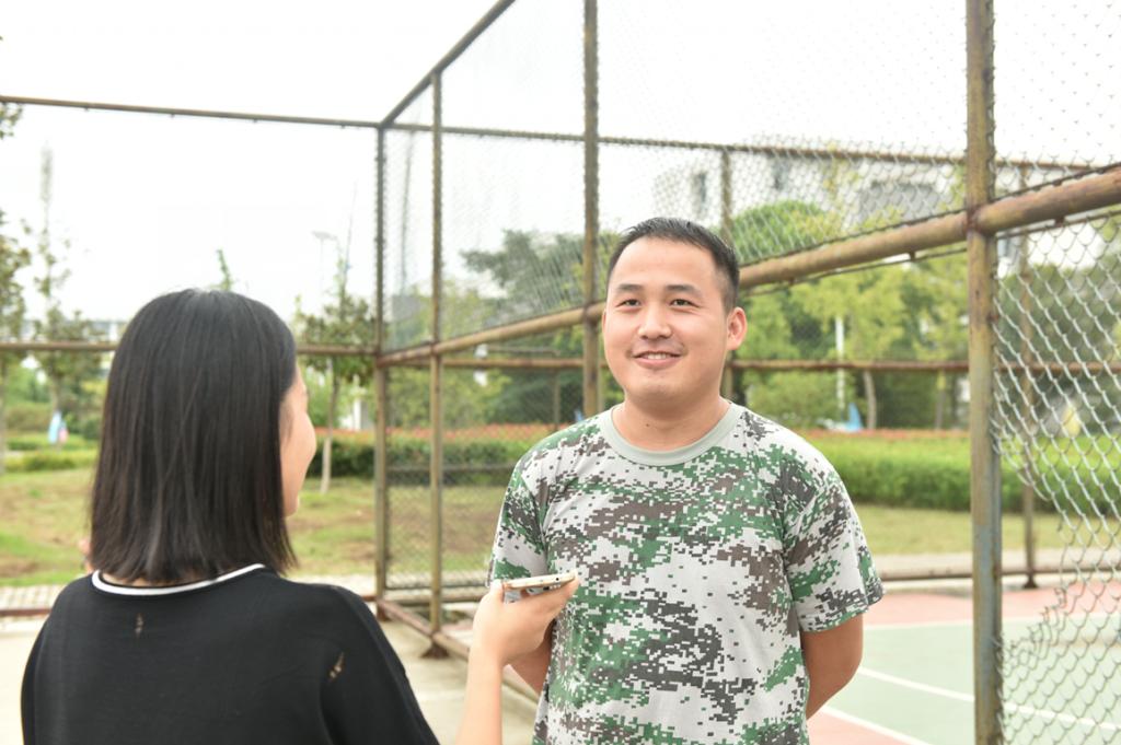 随后我们又采访到交通工程学院汽车检测与维修的朱春午同学,同样作为一名退伍军人,他的感触也是颇多。他说不论是一名军人还是一名学生,要做的都是为国家做出贡献,实现自己的价值,完成自己的使命。“忠诚于党、热爱人民、报效国家、献身使命、崇尚荣誉”这二十字是我们当代人应该牢记于心的责任。他在这次新生军训中还充当了教官的角色,严格要求自己,训练新生,“以前在部队训练,部队的严格要求,让我每天都感到特别累,但是坚持下来没放弃,学到了很多东西。现在的严格训练,也是为了锻炼同学们。我希望能通过这次短暂的军训,磨炼他们的意志,和大家一起成长。”他最后说到。