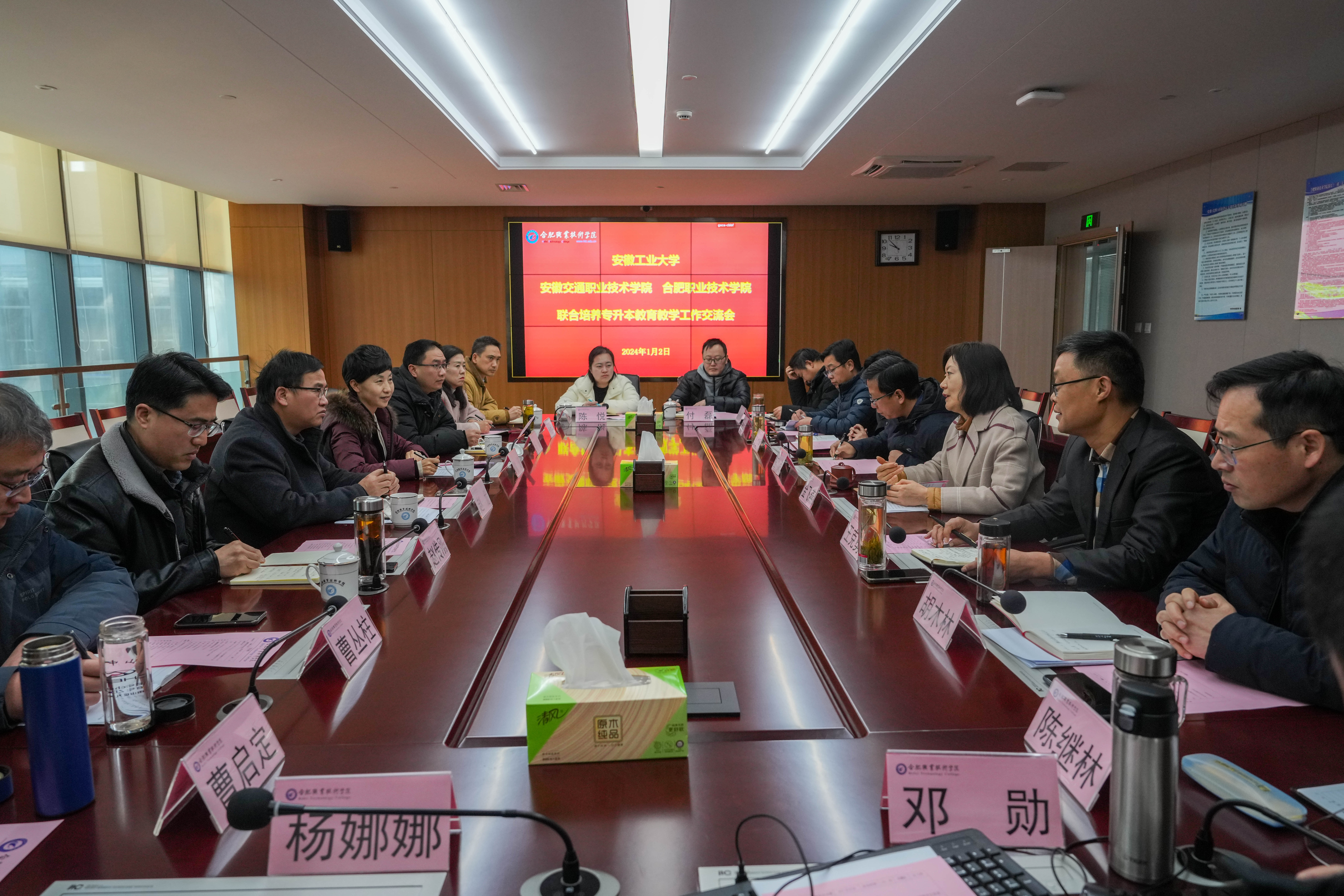 为了切实做好联合培养本科生工作,确保首届毕业生的培养质量,1月2日,安徽工业大学学生工作部(处)部(处)长、大学生就业创业指导中心主任赵龙、安徽交通888集团学院党委委员、学生处处长喻谨等一行10人来我校考察交流联合培养专升本教育教学相关工作。我校党委副书记金飞燕,党委委员、办公室(党办)主任、汽车工程学院书记王海,学生处处长王克勇,教务处处长窦红平,相关二级学院负责人参加本次会议。会议由金飞燕主持。