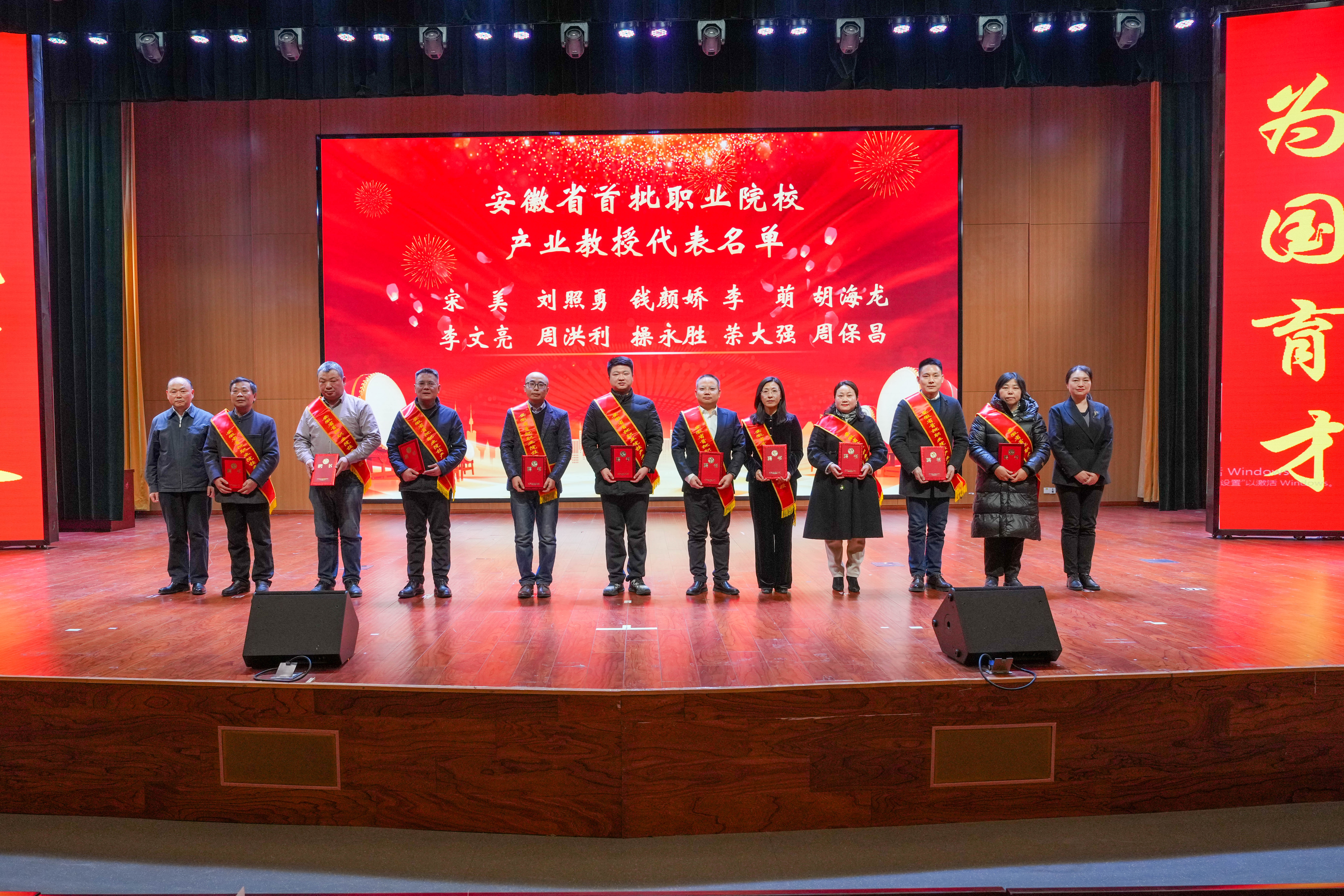 为进一步推动教育链、人才链与创新链、产业链深度融合,充分发挥职业教育在培养高素质技术技能型人才中的主力军作用,稳步建立职业院校产业教授选聘制度,1月29日,安徽省首批职业院校产业教授聘任仪式在我校汇心湖校区大学生活动中心举行,省教育厅、省发改委、省人社厅、省总工会等有关部门领导,各市教育局、人社局及相关院校负责同志,产业教授代表、企业代表参加仪式。仪式由校党委副书记、校长檀明主持。