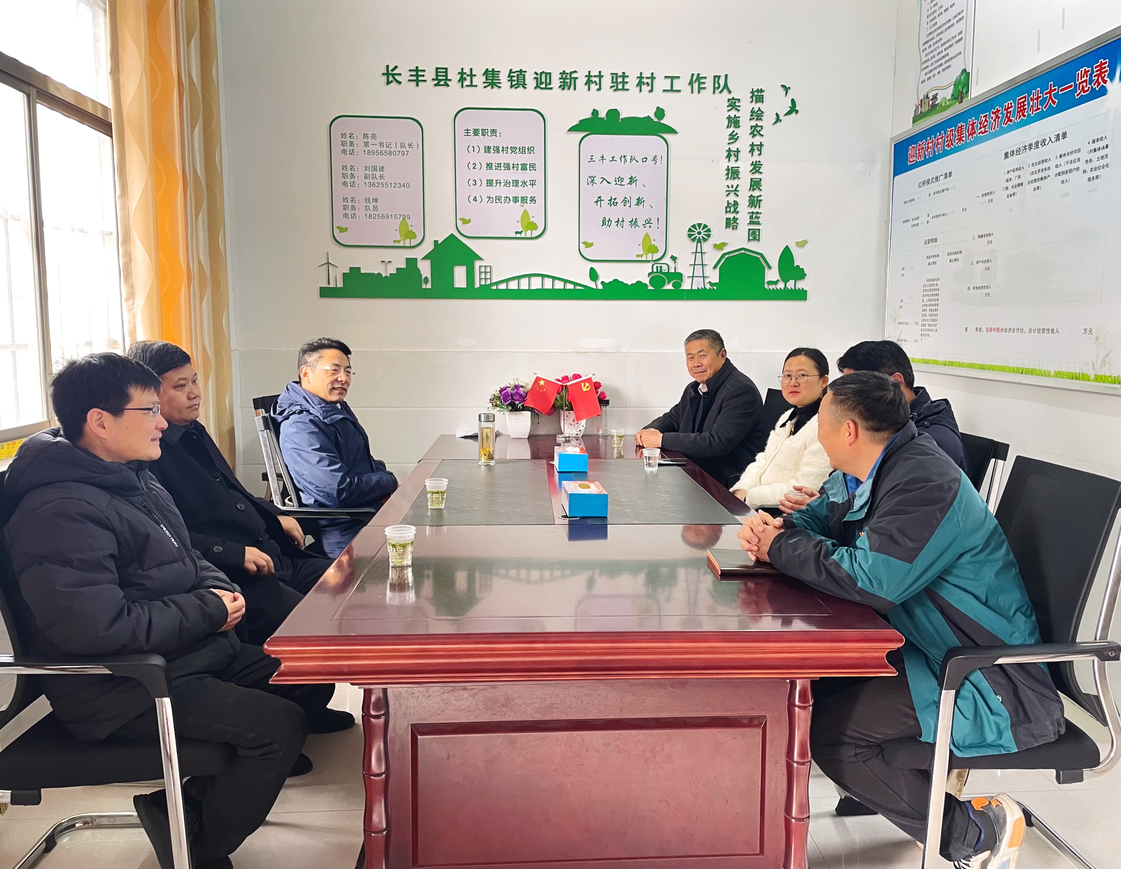 王杰才一行先到村看望了学校选派驻村干部陈亮同志,并与镇、村两级干部进行座谈交流,详细了解村集体经济发展和选派干部驻村工作开展情况。杜集镇镇长王云凤高度评价了我校选派驻村干部在维护稳定、经济建设等方面的突出表现。王杰才对选派干部履职尽责的敬业精神给予肯定,表示学校会发挥优势全力支持选派村的建设发展工作,并鼓励选派干部继续发扬攻坚克难的优良作风,积极思考谋划迎新村发展前景,圆满完成驻村任务。