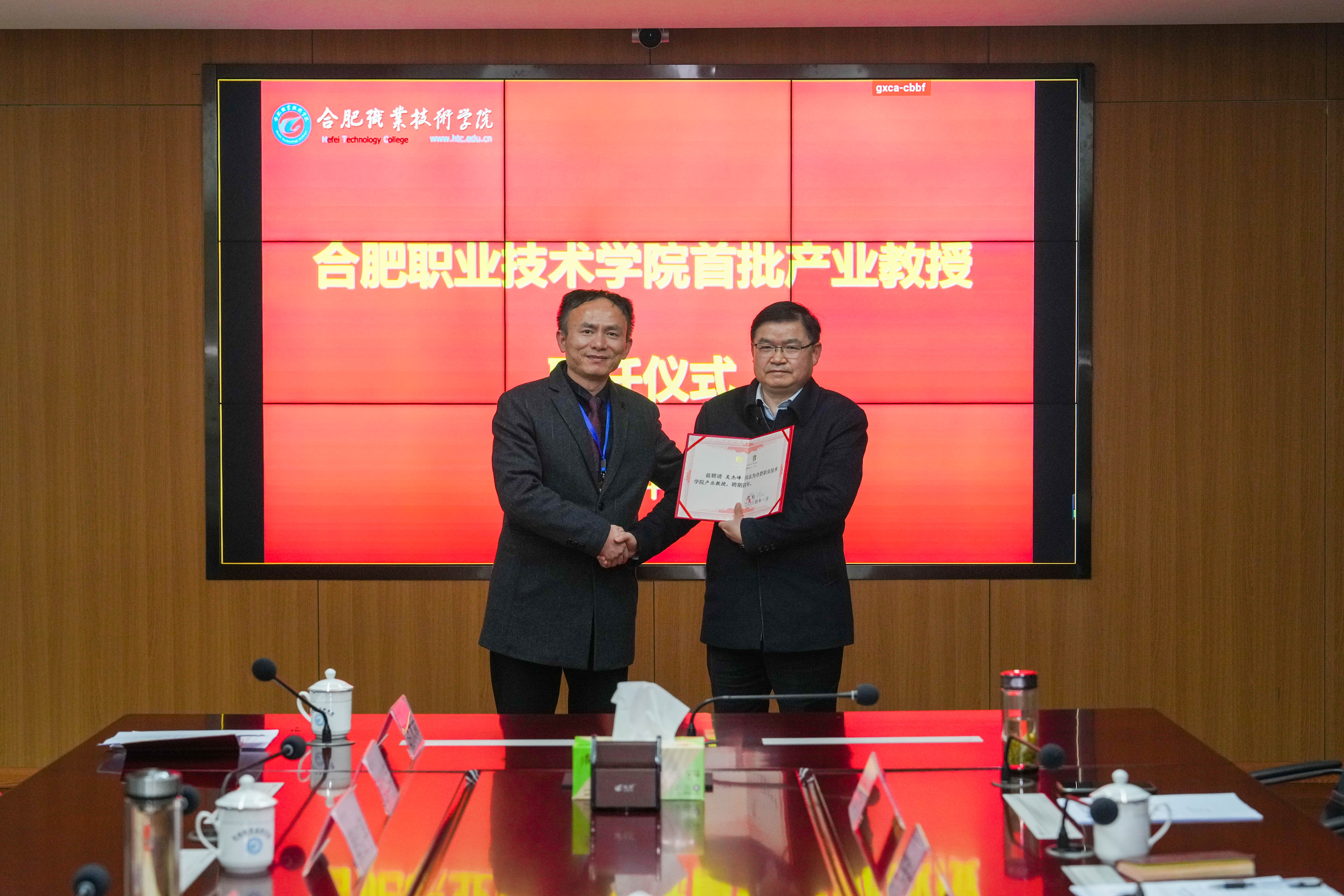 王杰才对六位产业教授的加盟表示热烈的欢迎,同时指出,产业教授的加入为学校注入了新的活力,为校企合作提供了更广阔的空间。他强调,二十大报告首次全面提出了职普融通、产教融合的新理念,产业教授正是这一创新理念的具体体现,是推动产教融合、校企合作更加深入发展的具体举措。当前,学校正面临着新的机遇与挑战,有了六位产业教授的大力垂青和积极相助,使得我们信心倍增。希望学校与产业教授紧密合作,围绕社会所需,产业所要,将学校、企业、专业和产业紧密联系在一起,真正在我校职教本科的冲刺阶段以及合肥市作为国家产教融合试点市的各项举措创新中取得实实在在的成果,共同打造合肥职教发展中的典范。