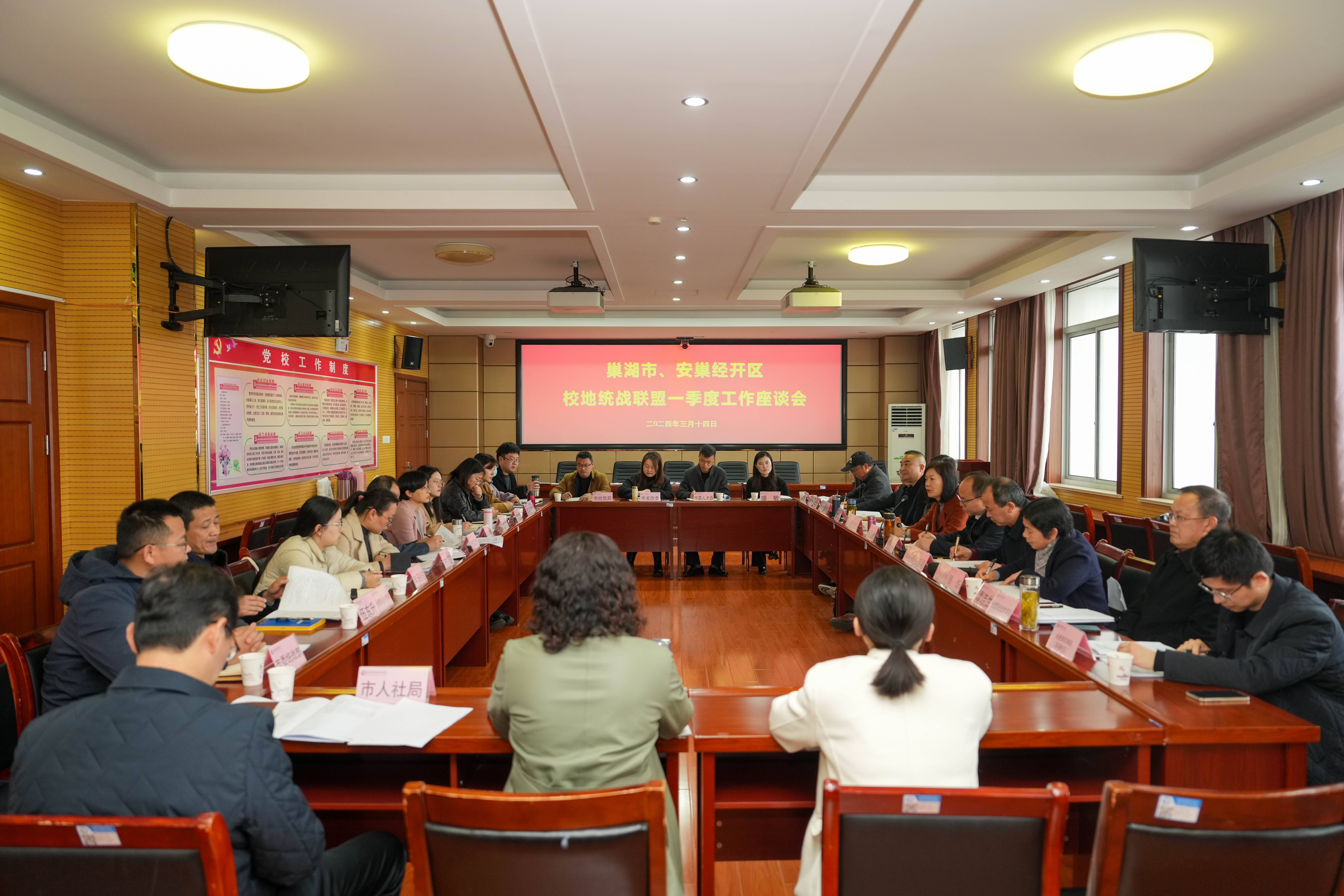 为贯彻落实党中央关于高校统战工作决策部署及省委、合肥市委、巢湖市委工作要求,3月14日下午,巢湖市、安巢经开区校地统战联盟一季度工作座谈会在我校鼓山校区召开。巢湖市委常委、组织部部长、统战部部长张金平出席会议并讲话,校党委副书记金飞燕致辞、会议由巢湖市委统战部常务副部长曹勇主持。