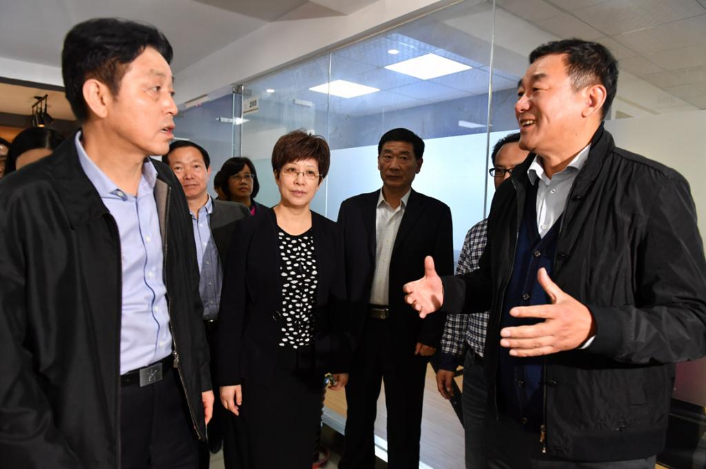凌云市长一行首先参观了科技企业孵化器,重点调研了合工光魔、良祝动画等企业运行状况,这两家企业均有我校学生参与创业。随后,凌云市长一行还考察了园区小白楼的海归创业团队影领科技,该团队主要将大数据、人工智能等最新的科技应用于精准医疗,引起了来访领导们的极大兴趣。最后,凌云市长等来到智谷众创空间,参观了我校在读学生宋新陈的创业团队,与宋新陈同学亲切握手,并听取了他的创业项目介绍,同时也对我校的创业团队给予了充分肯定。