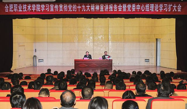 为更加深入学习贯彻党的十九大精神,进一步领会和把握十九大精神的思想精髓和核心要义,11月21日下午,我校在大学生活动中心二楼礼堂召开了学习党的十九大精神宣讲会暨党委理论学习中心组扩大会。校领导班子全体成员、全体教职工参加了会议,省委宣传部宣讲团成员、省行政学院党委委员、副院长江观伙教授出席会议并作了主题报告,会议由校党委书记罗兆好主持。