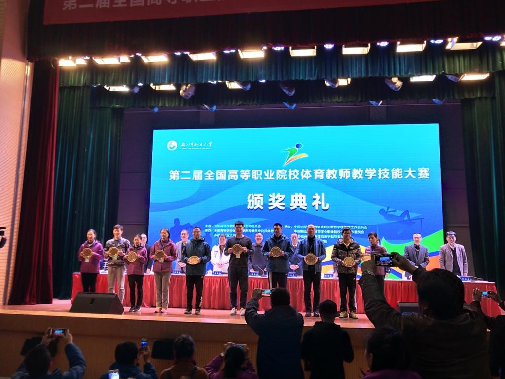 11月23日—26日,由全国高等学校体育教学指导委员会主办,苏州市职业大学、全国高等学校体育教学指导委员会公共体育组承办的“第二届全国高等职业院校体育教师教学技能大赛”在江苏省苏州市职业大学落下帷幕。安徽代表团共派出10位老师参加,我校基础教育学院刘亚东老师作为省赛冠军不负众望,喜获一等奖,同时获得教学与实践类(说课与微课)一等奖,是安徽代表团唯一一个获得全国一等奖的选手,为安徽省和学校争得了荣誉。
