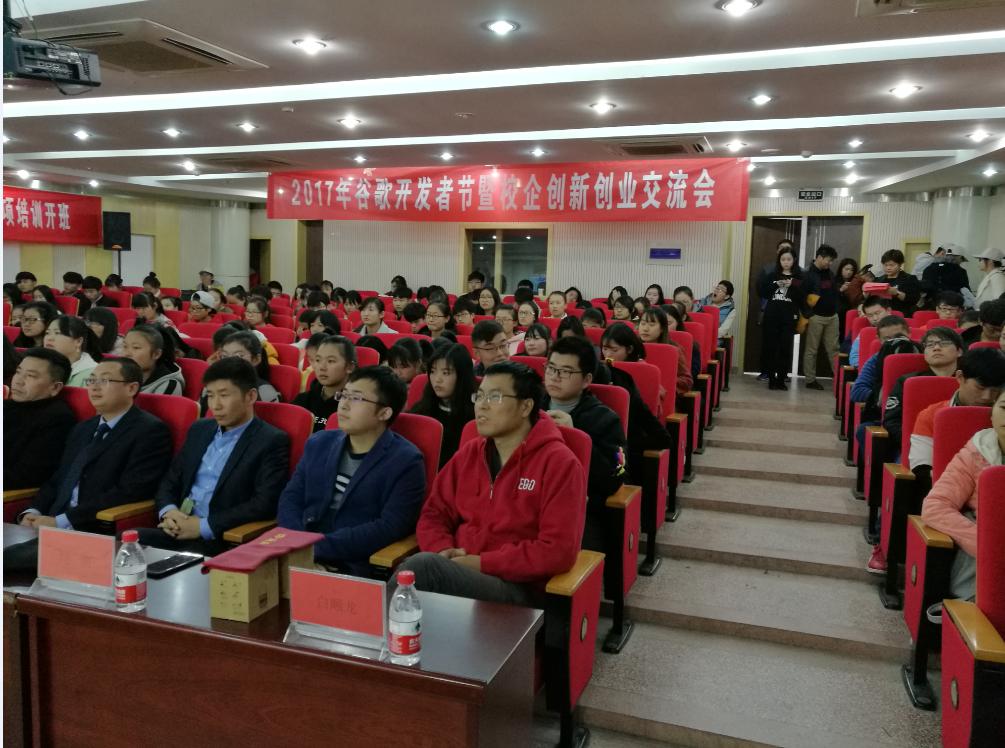 11月25日,第五届合肥谷歌开发者节暨校企创新创业交流会在我校图书馆一楼第二报告厅圆满落幕。校党委副书记胡其云以及我校120余名师生代表参加活动。