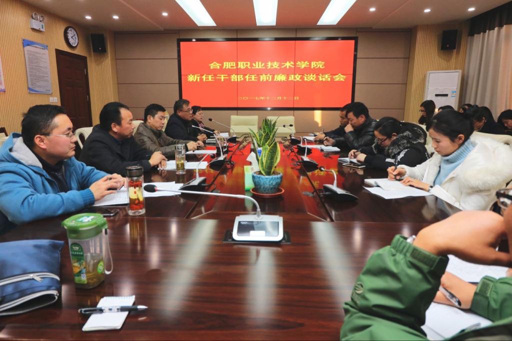 为进一步增强新任干部的政治意识、责任意识和廉洁意识,充分发挥干部任前组织廉政谈话的作用。12月12日下午,学校在行政楼三楼会议室召开新任干部任前组织廉政谈话会。学校党委副书记胡其云、纪委书记金辉出席会议,组织部、监察审计室相关人员及21名新任干部参加此次会议。会议由胡其云同志主持。