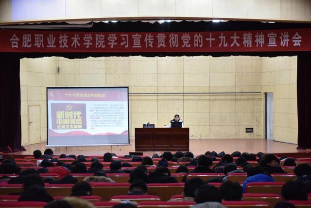 为认真学习、深入领会、大力宣传、全面贯彻党的十九大精神,我校组织成立了以校党委分管负责人为团长,部分职能负责人及思政部骨干教师为团员的学校党委十九大精神宣讲团,利用课余时间,在大学生活动中心二楼礼堂面向学生进行十九大精神的广泛宣讲。此次系列宣讲活动从12月4日起持续至12月22日,总共十五场,实现在校学生学习十九大精神全覆盖。