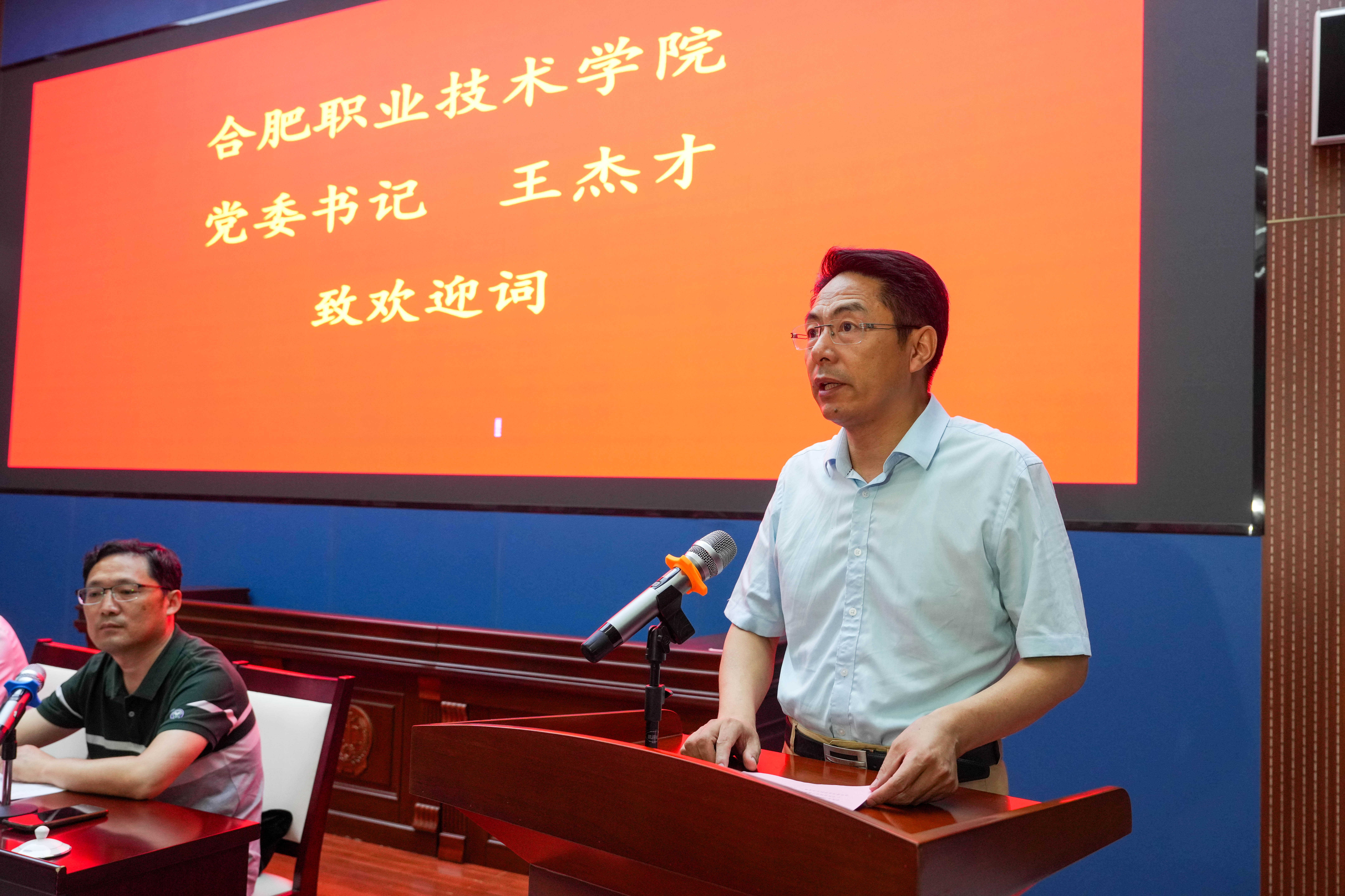 王杰才首先致辞。作为实践活动承办方,他向长期以来关心、支持学校建设和发展的各级领导、各界朋友、职教同仁表达衷心地感谢,同时介绍了我校近年来的发展以及此次教师到企业实践活动的组织开展情况。他表示,专业课教师企业实践活动的开展,是推动合肥市职业教育专业课教师队伍建设,提升职业院校教师实践能力,促进产教融合、校企合作的重要举措,学校将全心投入做好实践活动服务保障工作,突出实践促进行业企业与职业院校间的合作交流。他强调,学校将以本次活动为契机,总结经验成效和不足,进一步提升学校的社会服务能力和水平,为合肥市职业教育发展多做贡献。