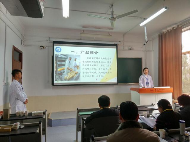 回顾比赛过程,历历在目。从2017年9月至2017年10月25日的1个多月时间里,参赛师生通过不断地查阅文献、刻苦训练、不断完善参赛作品,并到校企合作单位——安徽青松食品集团进行现场学习。最终,我校选送的6件作品全部进入决赛。决赛中,每位参赛选手面对评委进行5分钟PPT演讲和3分钟答辩,评委仔细观察产品包装,品尝味道,认真聆听选手的答辩。答辩过程中,我校参赛作品和参赛选手的精彩演讲与沉着答辩获得了评委的一致好评。