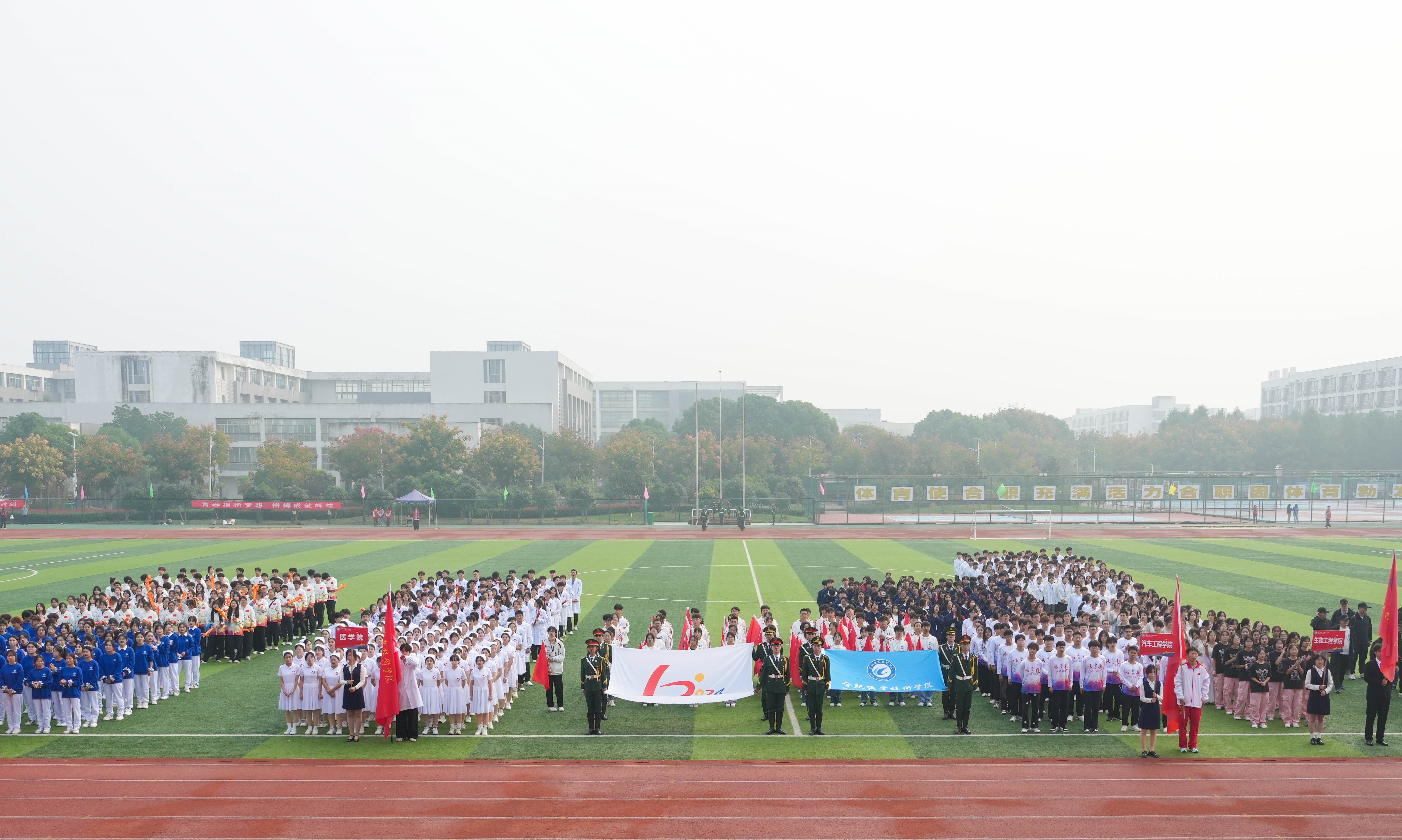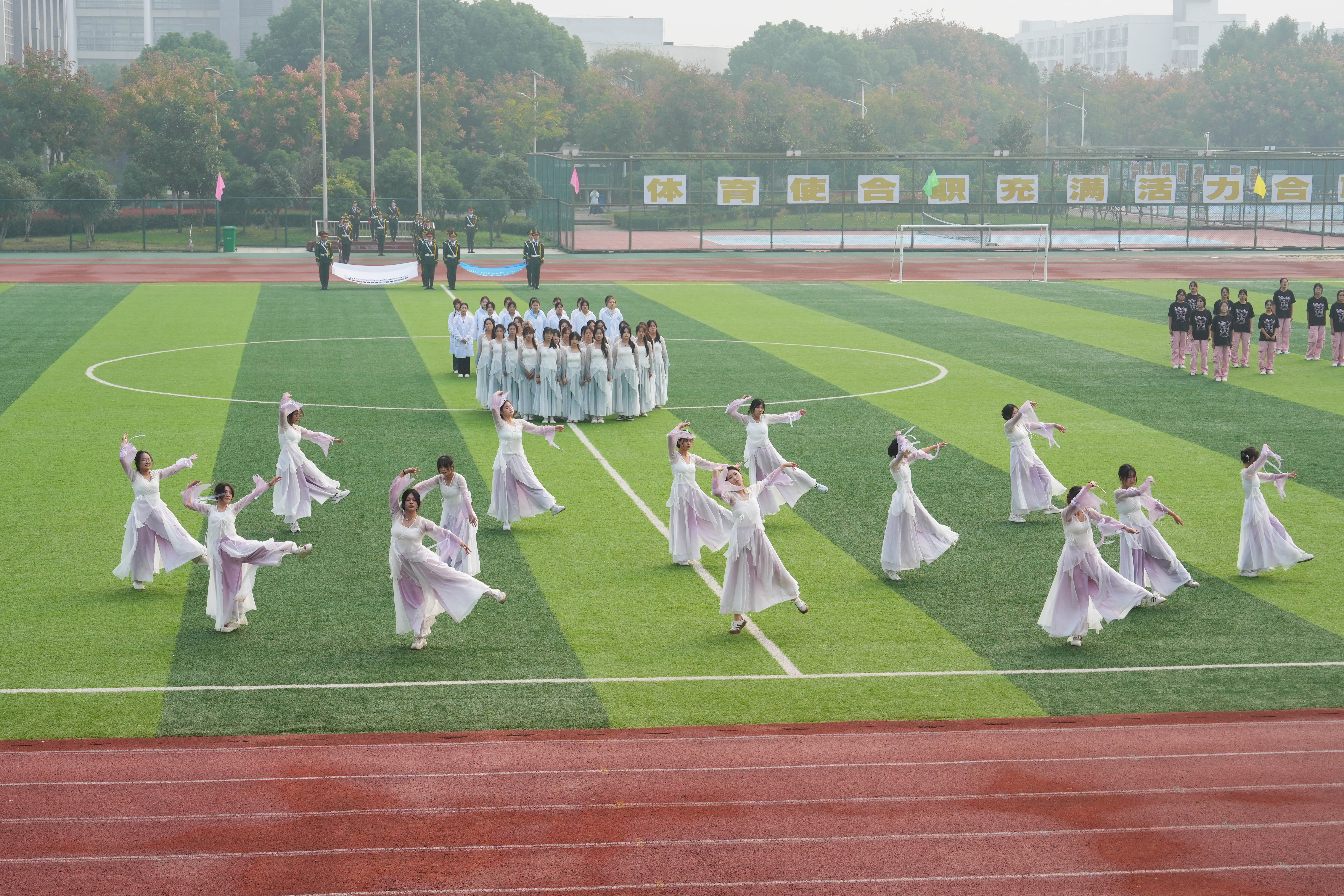 金飞燕致辞。她指出,学校坚持贯彻习近平总书记关于体育的重要论述精神,始终秉承“以学生为本”的理念,坚持把“健康第一,终身体育”作为体育工作的目标,不断推进体育俱乐部建设,加快推进体育评价改革,通过举办丰富多彩的体育活动,营造了浓厚的校园体育文化氛围。同时,运动会也为教职工提供了一个展示自我、增进友谊、锻炼身体、激发斗志的舞台。希望全体运动员以顽强拼搏、自强不息的必胜信念,团结协作、并肩作战的宝贵品质,投入到本次运动会中去,赛出风格、赛出水平、赛出友谊,充分展现合职学子和中国青年一代自信乐观、热情友好的阳光气质。希望全体裁判员、教练员和工作人员恪尽职守,以高度的责任心、热情的服务和无私的奉献,优质高效地完成各项工作,确保运动会的顺利进行。最后,她预祝本次运动会圆满成功,祝愿大家在比赛中都能取得优异成绩!