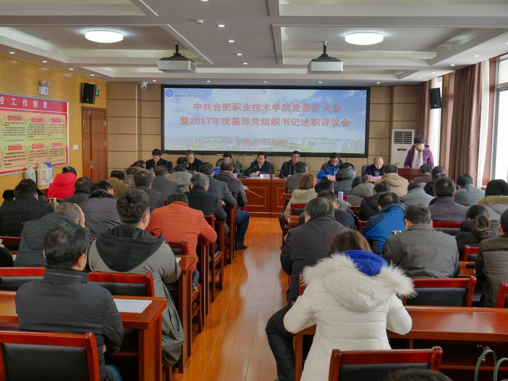 为深入学习习近平新时代中国特色社会主义思想和党的十九大精神,推动全面从严治党向基层延伸,不断增强基层党组织的战斗力、凝聚力和向心力,2月2日下午,学校党委在五楼会议室召开党委扩大会暨2017年度基层党组织书记述职评议会。学校党委班子成员、各党总支委员、党支部书记、二级学院主要负责人(含主持工作的)、各部门负责人以及“两代表一委员”参加了会议。会议由学校党委书记罗兆好主持。