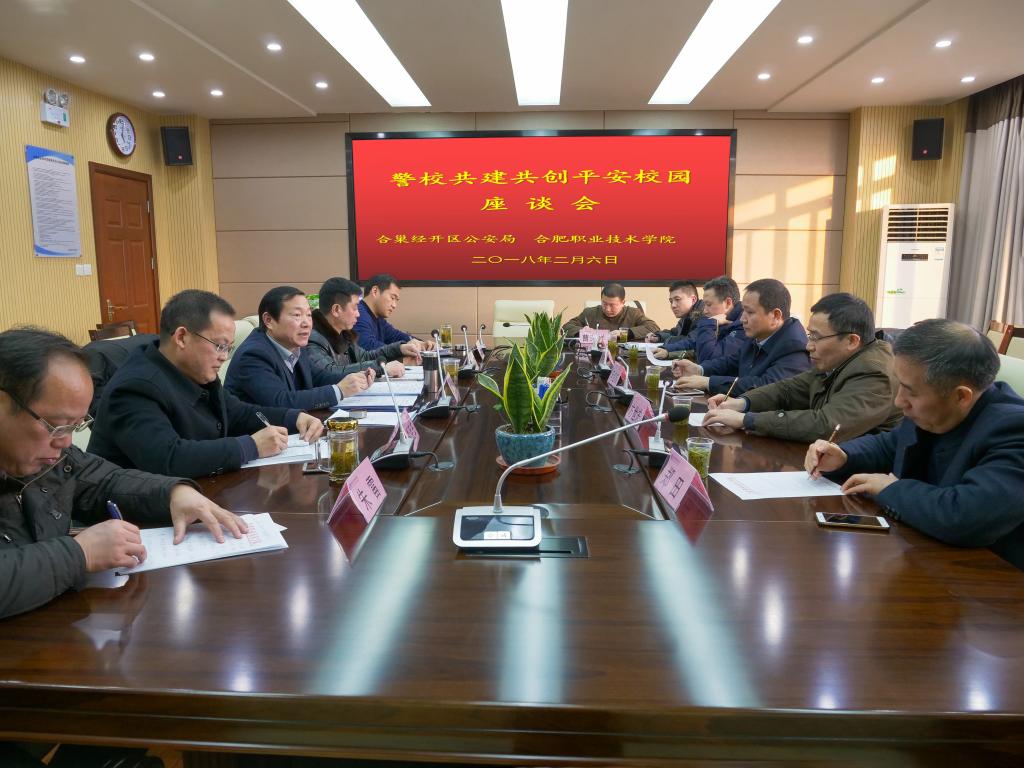2月6日下午,应我校邀请,合肥市公安局巢湖经济开发区分局领导班子成员、半汤派出所主要领导一行7人来到学校,就警校共建、共创平安校园召开座谈会。学校党委书记罗兆好、副书记胡其云及保卫处相关负责同志参加了座谈会。