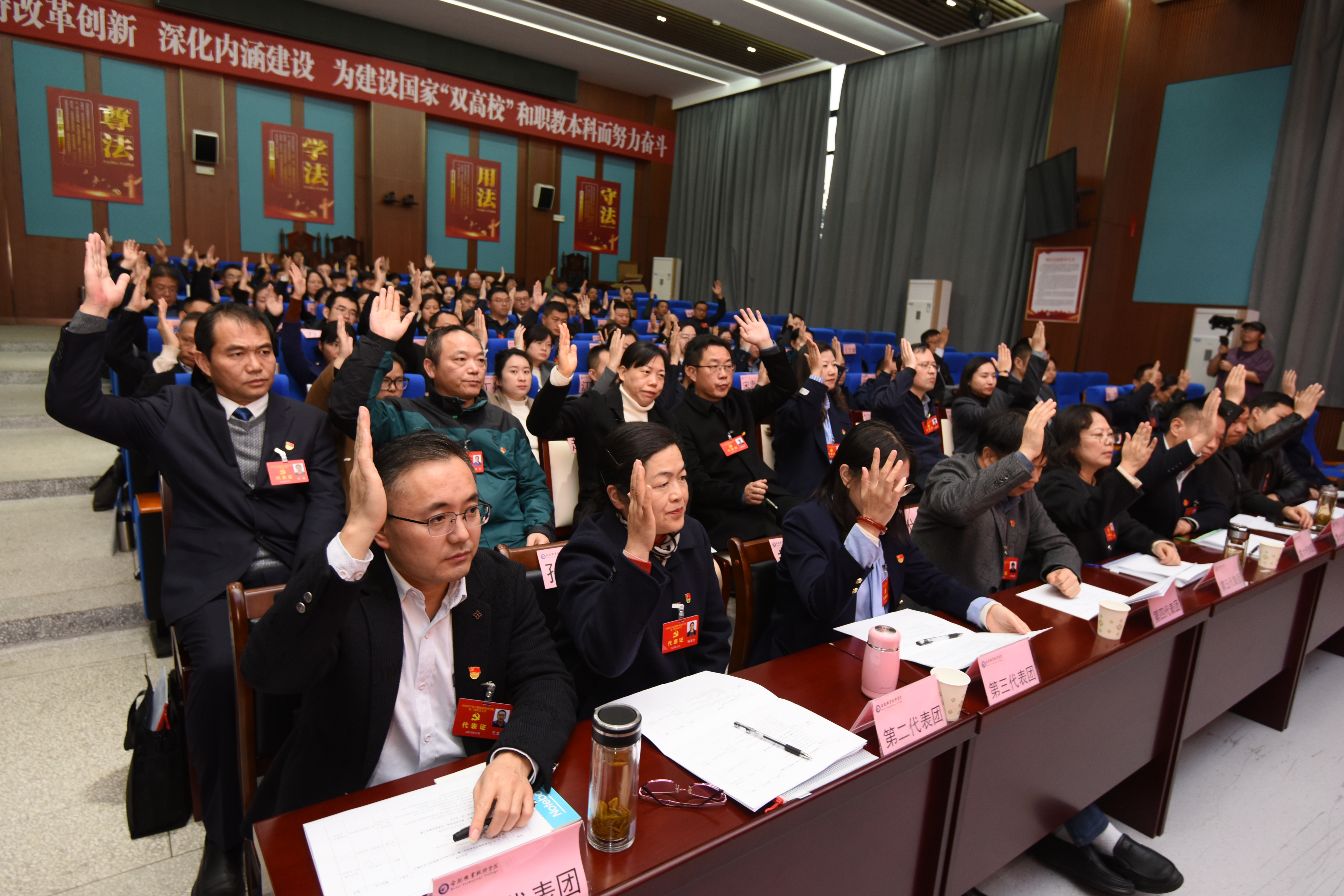 报告指出,五年来,坚持党的全面领导,政治保证更加坚强;坚持统筹“三全育人”,立德树人特色彰显;坚持聚焦主责主业,内涵建设走深走实;坚持落实职教使命,服务能力显著增强;坚持推动机制改革,办学治校水平持续提升;坚持同心同行,和谐校园呈现新气象。五年来的探索实践和跨越发展,让我们深刻体会到:必须坚持党对学校工作的全面领导不动摇;必须坚持大力服务地方经济社会发展不动摇;必须坚持深化改革创新释放办学活力不动摇;必须坚持以师生为本的办学理念不动摇。