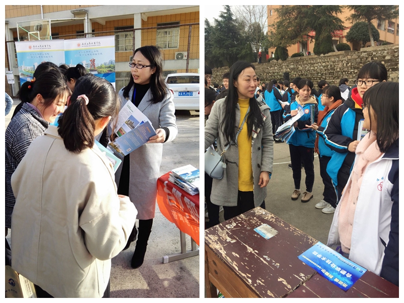 本次招生宣传共组织18名老师分10条线路,进中学宣传100多场,覆盖皖北、皖中、皖西南生源集中区域,每场宣传我校都引起热烈的反响,招生宣传折页很快就被一抢而空。前去宣传的老师虽然经常一场宣传下来就声音嘶哑,但还是微笑倾听,耐心解答,细致周到地为考生、家长咨询提供服务。在进中学宣传的同时,我校还充分发挥新媒体技术在招生宣传中的作用,有效利用学校官方网站、招生手机网站、微信平台,进行全方位立体化的深入宣传。