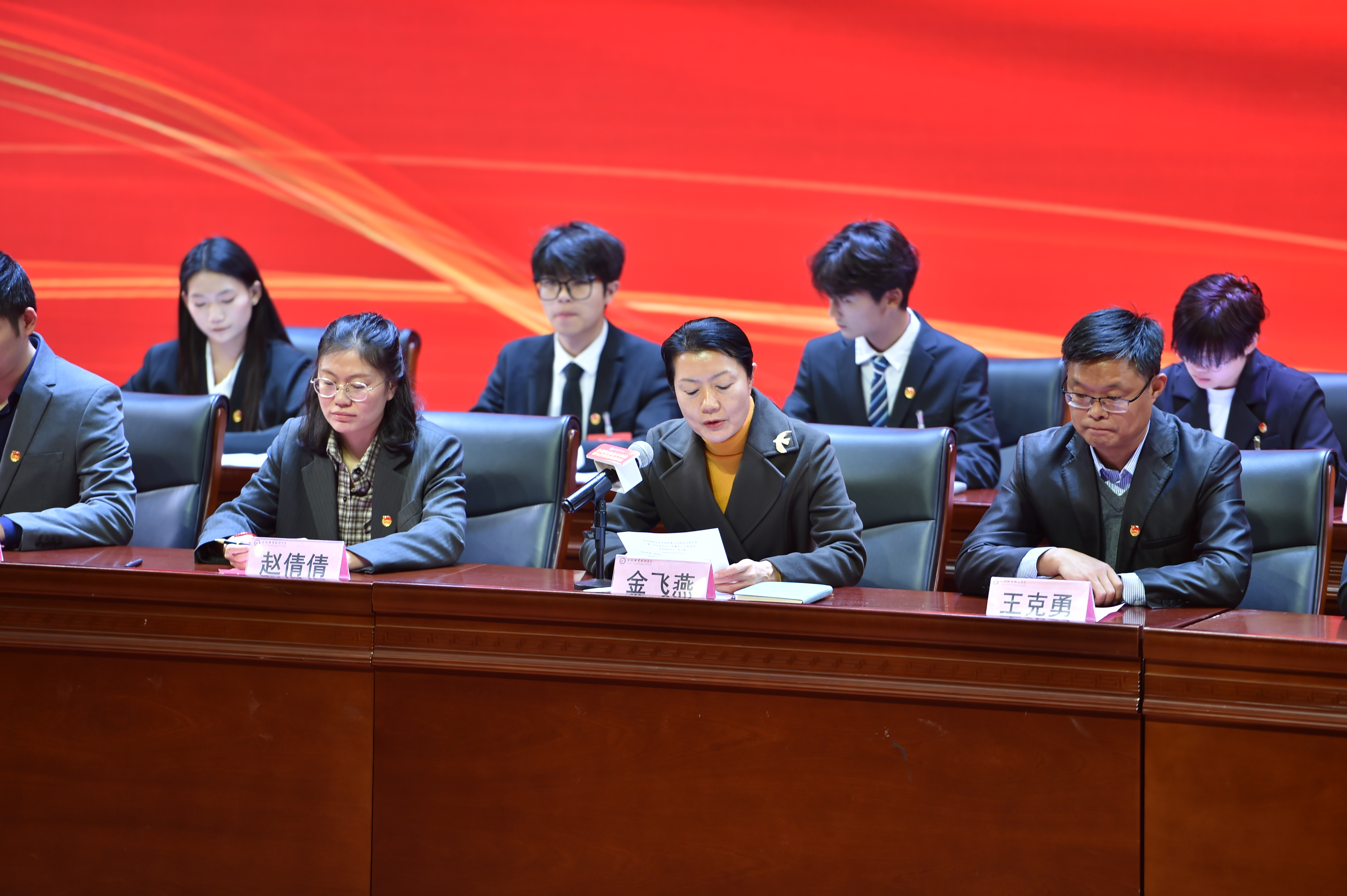 金飞燕指出,2023年,在学校党委的坚强领导,在市学联的悉心指导和学校团委的直接指导下,学生会组织和广大青年学生为推动学校发展建设做出了积极贡献。她表示,此次学代会是在全校上下全面贯彻落实党的二十大及二十届二中、三中全会精神,深入学习贯彻习近平总书记考察安徽重要讲话精神和学校第三次党代会决策部署、全面开启高质量内涵式发展新征程的关键时期所召开的,学校党委高度重视,她代表学校党委对大会的召开表示热烈祝贺并对出席的代表致以亲切的问候。