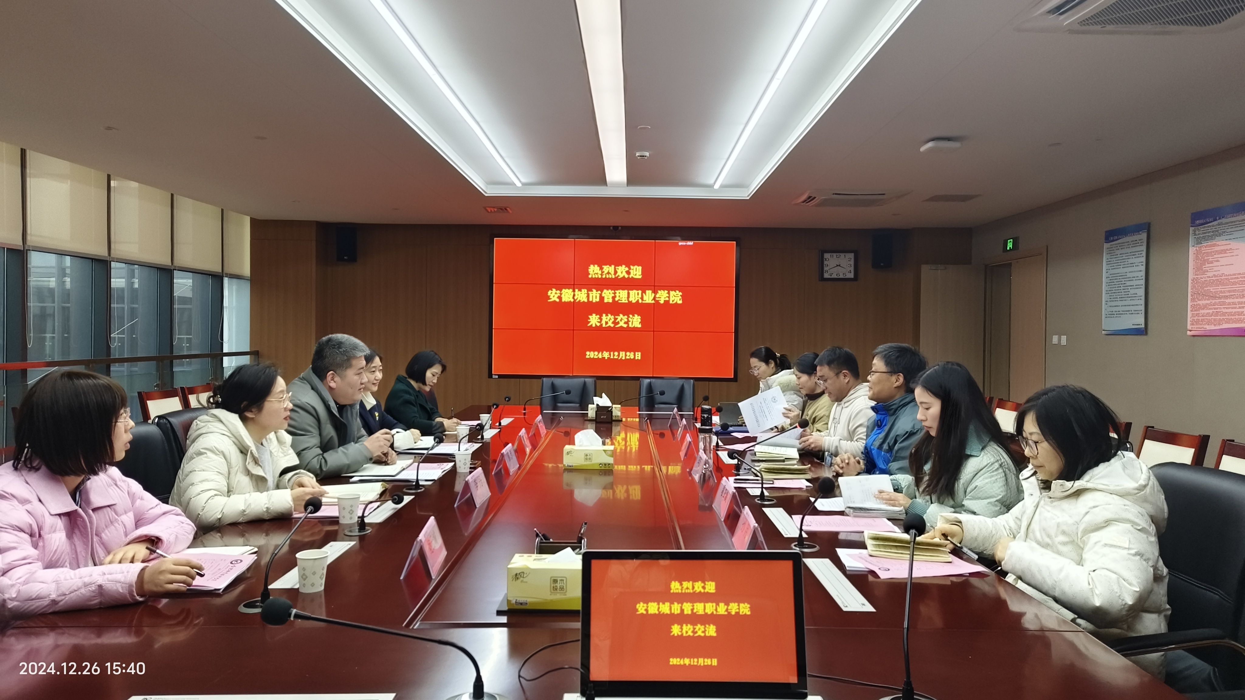 12月26日下午,安徽城市管理职业学院学生处副处长(主持工作)康彦一行5人来校调研交流,我校学生处处长王克勇、学生处相关业务教师及二级学院心理辅导站教师等参加交流。