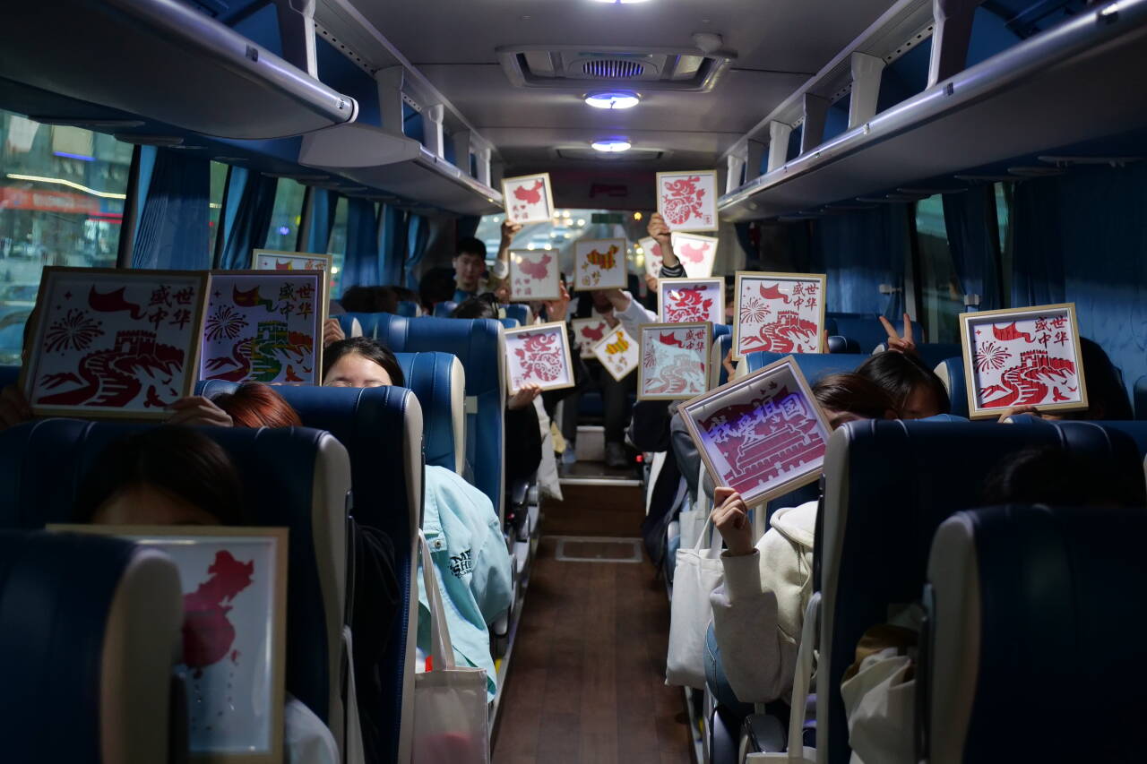 归程途中,同学们化身 “非遗传承人”,将传统竹编工艺与爱国主题相结合,亲手创作寓意深刻的竹编画,于指尖传承非遗文化,在心底厚植爱国情怀。