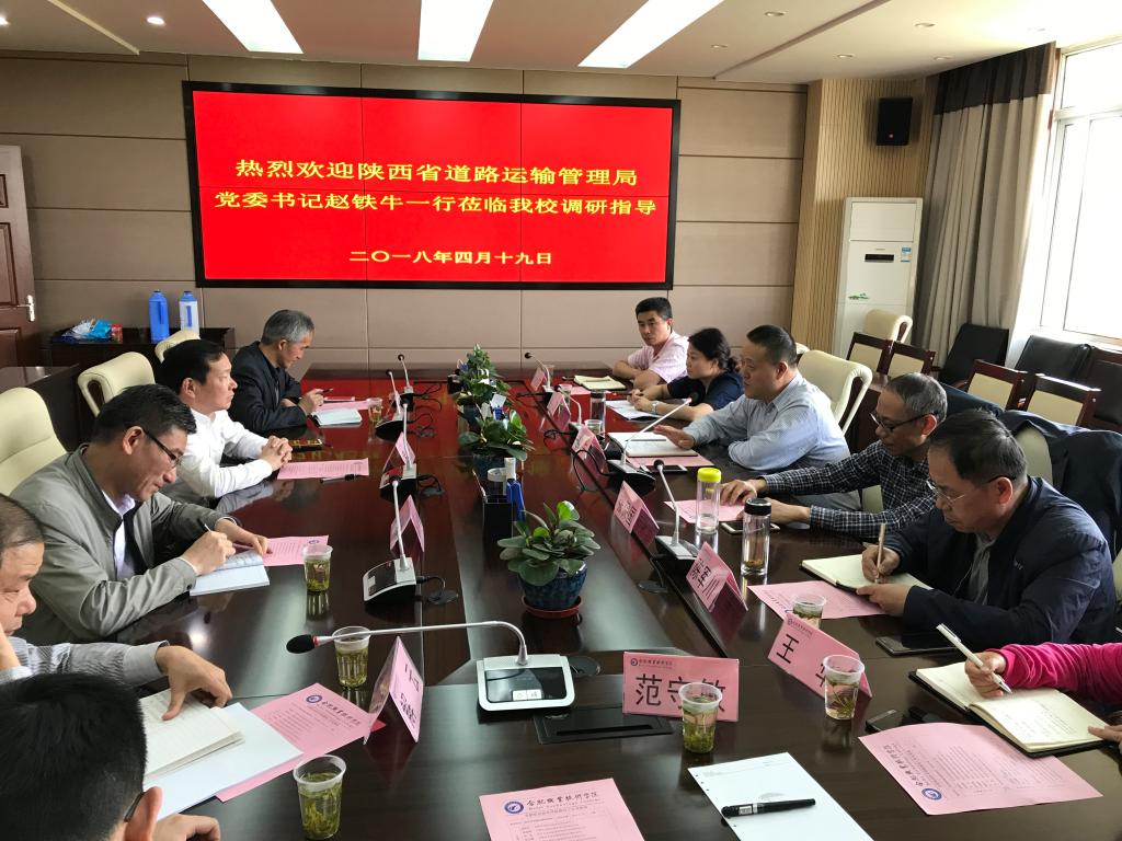 4月19日上午,陕西省道路运输管理局党委书记赵铁牛、陕西省交通888集团学院经济管理学院院长陈军川等一行在安徽省道路运输管理局党委副书记张保国陪同下来到我校,对我校大客车驾驶职业考试开展工作进行调研。