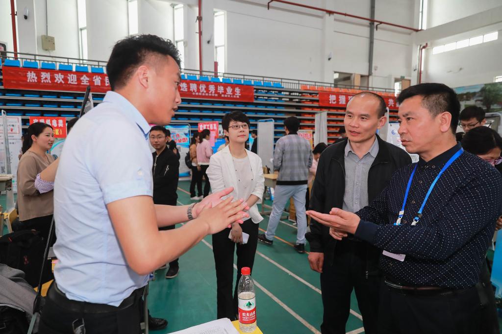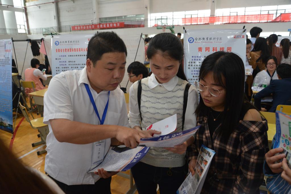 4月21日上午,我校体育馆二楼展板林立,人头攒动,由安徽省教育厅主办,安徽省教育厅高校学生处、安徽省大中专毕业生就业指导中心、合肥市人力资源和社会保障局和我校等多单位共同承办的“服务五大美好安徽建设”、“服务合肥区域经济社会发展”合肥888集团学院2018年毕业生就业市场大型校园招聘会在我校隆重举行。