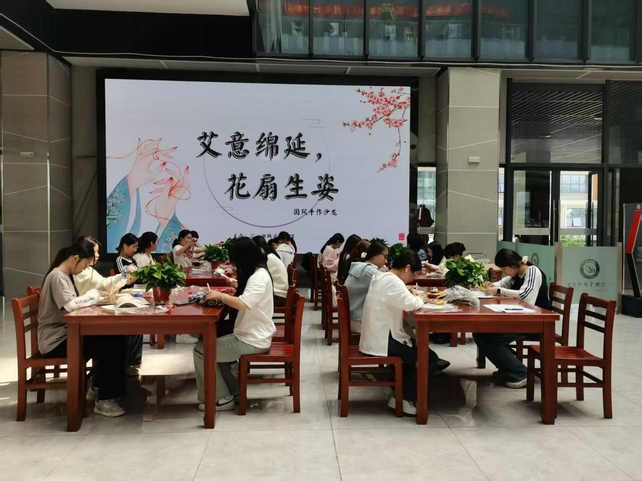 两个校区同时举办了”我参与 我阅读”签名和传统手工制作活动,吸引了众多学生参与。传统手工制作活动中同学们分组制作干花团扇与艾草锤,在视频指导下将传统技艺与现代创意结合,体验手工艺魅力,感悟文化传承。