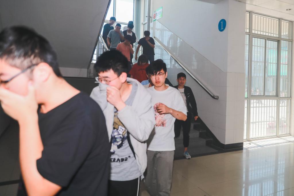 上午9:30,演练总指挥校党委副书记胡其云下达演练指令,安保人员点燃发烟饼,消防人员拉响警报。听到警报,各岗位人员按演练实施方案,迅速做出逃生,在教学楼、实训实验室、学生公寓内的师生都快速有序地疏散到指定的安全集中地。