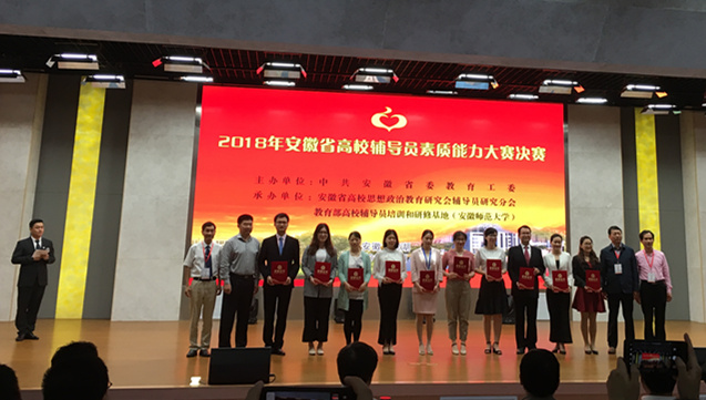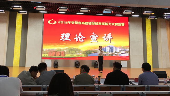 自2018年起,我省高校辅导员素质能力大赛由一年一次改为每两年举办一次,分校级初赛、区域复赛、省级决赛三个阶段进行。本次大赛包括笔试、谈心谈话、案例分析、理论宣讲4个项目,综合考察辅导员的专业理论素养、语言表达能力、沟通协调能力等。周婷老师凭借扎实的理论功底与过硬的技能,经过校级初赛、区域(合肥赛区)复赛、省级决赛,一路过关斩将,给评委和现场观众留下了深刻的印象,最终获得二等奖好成绩,实现我校在此项赛事中的重大突破。