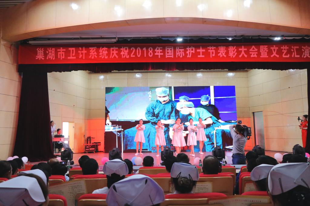 庆祝活动分为表彰和文艺汇演等两个部分。巢湖市卫计委党委委员、巢湖市疾控中心主任宋玉华宣读了《关于2017年度“护理工作先进集体”“优秀护士”和2018年度“护理创新大赛”优秀项目的表彰决定》。安徽医科大学附属巢湖医院等7家单位获得“护理工作先进集体”荣誉称号;安徽医科大学附属巢湖医院杨旭霞等一线岗位的护理工作者获得“优秀护士”荣誉称号;2018年度“护理创新大赛”有23项作品获奖,其中《血液标本盒改良法》和《改良式危重病人病员服》获得一等奖。我校获得“护理工作先进集体”荣誉称号,我校梁春艳老师获得“优秀护士”荣誉称号。