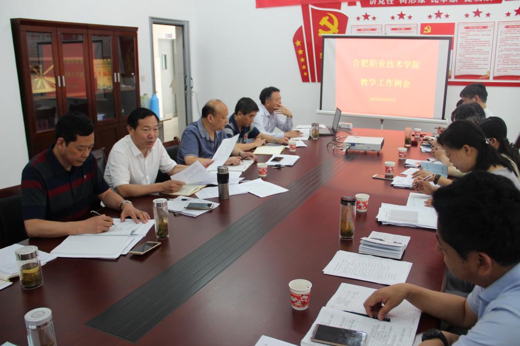教务处处长宋风长通报关于上报省教育厅地方技能型高水平大学、创新发展行动计划、省级实习实训基地等项目建设自查报告事宜,指出各项目负责人务必做好准备,提前准备好材料迎接省教育厅6月中下旬的抽查。并通报二级学院专业规划与调整事宜,强调专业设置要与合肥市产业布局吻合,逐步建立专业动态调整机制和预警机制。
