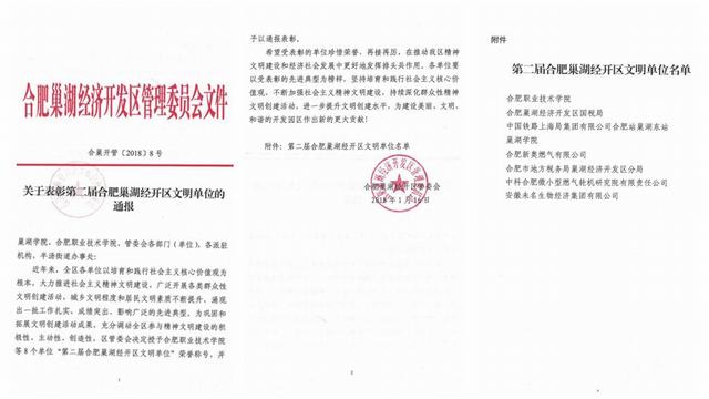 我校蝉联“安徽巢湖经开区文明单位”