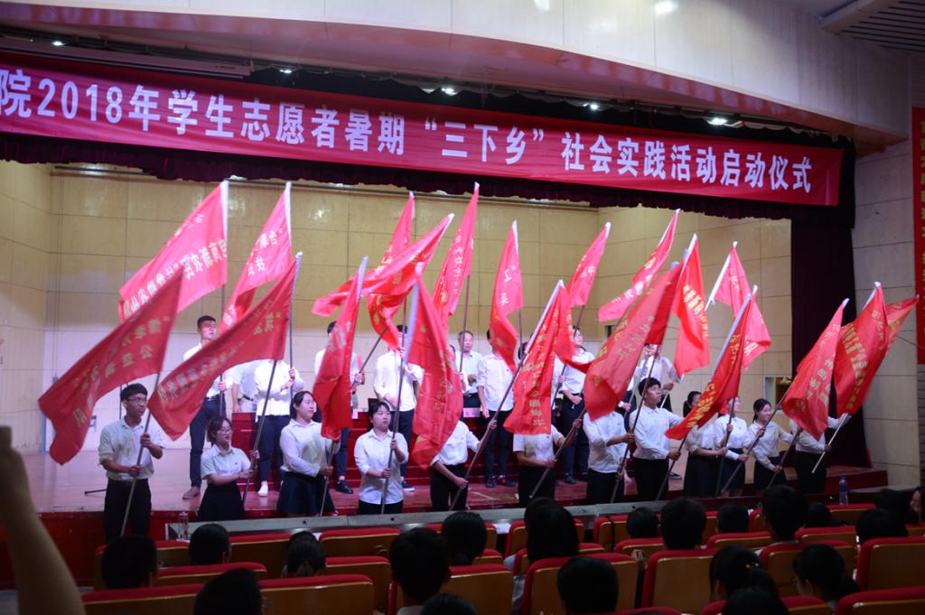 为引领广大青年学生认真领会和落实习近平总书记关于青年成长成才的一系列重要论述,做“有理想、有追求,有担当、有作为、有品质、有修养”的大学生,7月4日下午,我校2018年大学生志愿者暑期“三下乡”社会实践活动启动仪式在大学生活动中心礼堂隆重举行。校党委副书记胡其云出席活动并讲话。组织(人事)部、教务处、学生处、思政部、团委等相关部门负责人、各二级学院团总支书记、暑期社会实践团队指导教师及学生代表近500人参加启动仪式。校团委书记佘海月主持启动仪式。